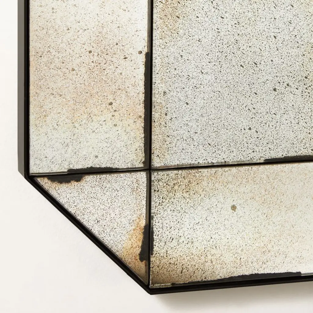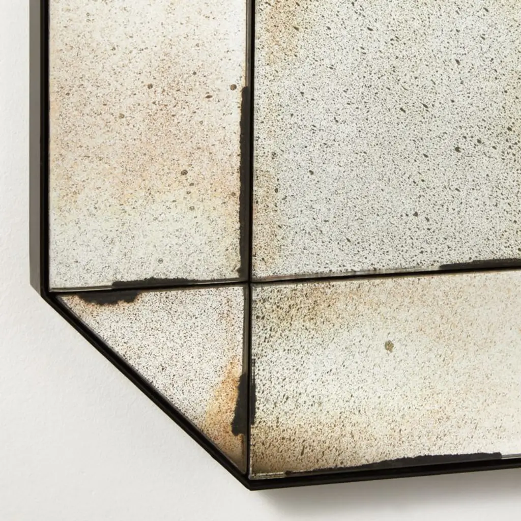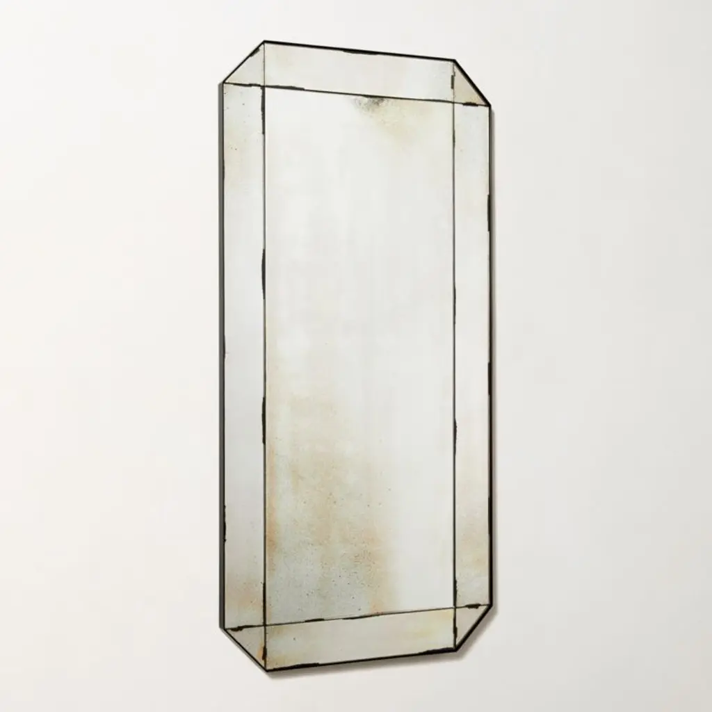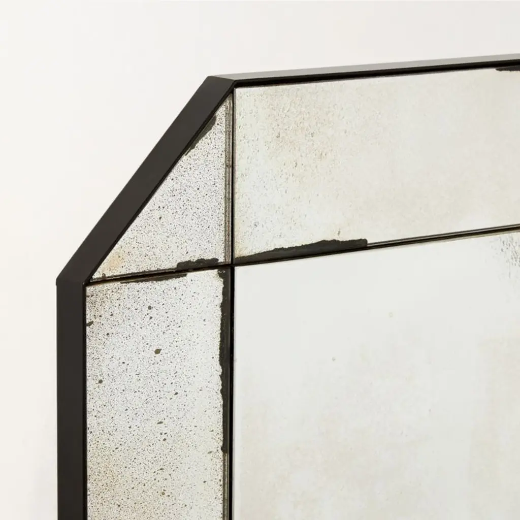 Black metal wall mirror makes a modern statement in the entry or dining room. Slim black metal frames antiqued glass for a modern look with a slight industrial edge. CB2 exclusive.
