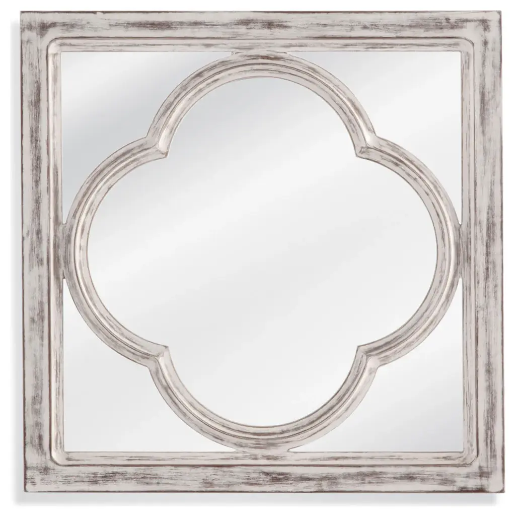 The Sutter Wall Mirror brings a touch of elegance to any space with its wood frame and overlay design, beautifully finished in a white-washed tone. The popular quatrefoil pattern adds a classic touch, making it a perfect fit for rustic and coastal interiors. Whether displayed alone or in multiples, this mirror creates a captivating focal point on any wall.Features:Wood frame with overlay designWhite-washed finish for a timeless lookQuatrefoil pattern for classic appealPerfect for rustic and coastal interiorsEquipped with D ring hangers for easy wall mountingMakes a statement when hung as multiplesFor over a century, Bassett Mirror has been synonymous with style and quality, transforming homes with its sophisticated and timeless designs. With a wide-ranging collection of furniture, lighting, mirrors, and art, Bassett Mirror seamlessly blends modern style with classic appeal. From rustic modern to luxe glam, each piece is thoughtfully crafted to inspire and elevate any space. Committed to exceptional value and customer care, Bassett Mirror makes it easy for homeowners to create beautiful, personalized interiors with confidence.