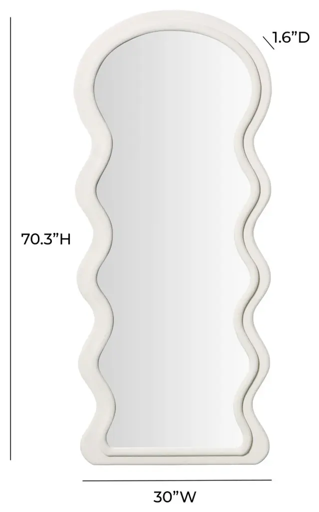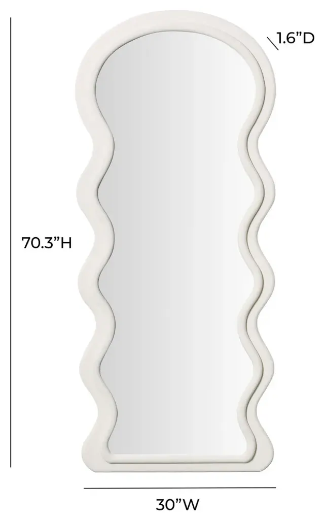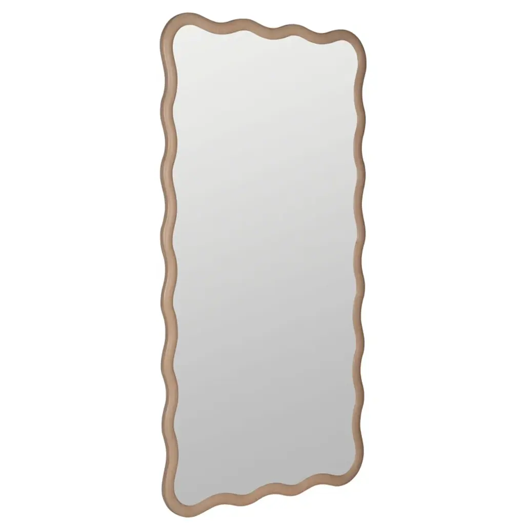 The dramatic Swirl floor mirror adds a touch of graphic whimsy to your home. Framed by a stepped, solid Ash frame with an oil finish, this mirror will brighten your walls with its bold, organic form.