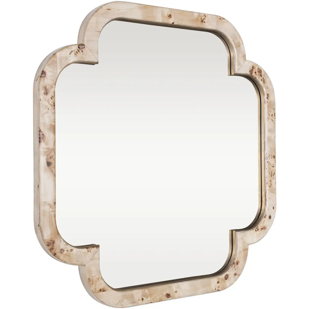 Swiss 36 X 36 Inch Poplar Burl With Weathered Brass Wall Mirror