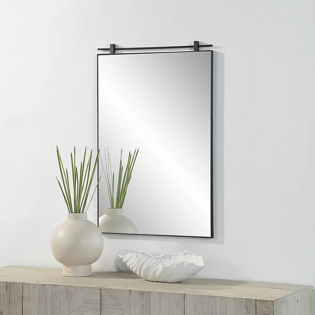 Elevate your living space with the sleek and stylish 36" tall rectangular mirror. The clean, round shape exudes modern charm that's perfect for any room. Its D-Ring hanging system ensures easy installation, while its optimized design makes vertical hanging effortless. This mirror not only adds visual appeal, but also serves as a functional piece that will brighten up any space. The high-quality construction and attention to detail will ensure that this mirror remains a standout feature in your home.