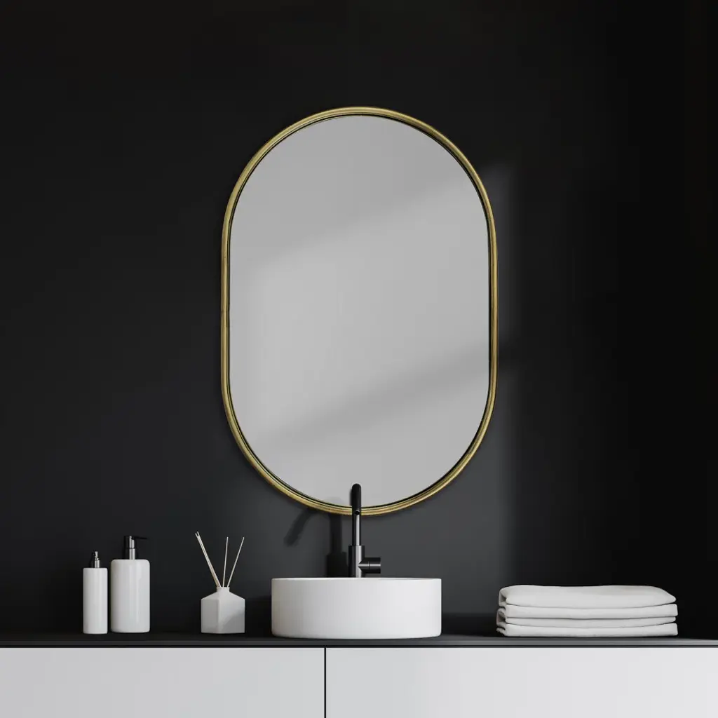 Sylvia I 24lx35h Oval Gold Metal Frame Wall Mirror