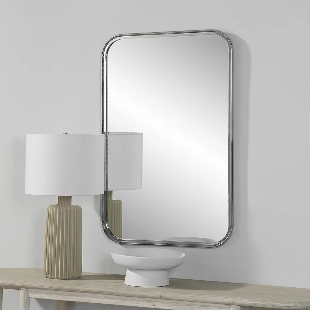 Softly rounded corners make the stylish Sylvie mirror stand out from the crowd. Constructed with a lightweight yet sturdy aluminum frame, hanging this wall art mirror is easy. Plus, its 2-way D-ring hanging system lets you display the mirror either vertically or horizontally wherever you want. A polished nickel-plated frame holds clear mirrored glass that provides a distortion-free reflection thats only available to high-quality mirrors like this one. Well-suited to decorating styles from mid-century modern to rustic farmhouse and everything in between, this is the perfect piece to add an updated touch to any space.