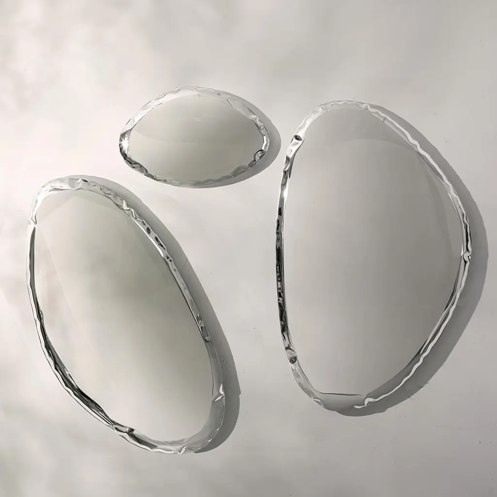 Tafla Abstract Wall Mounted Polished Stainless Steel Elliptic Drop Mirror