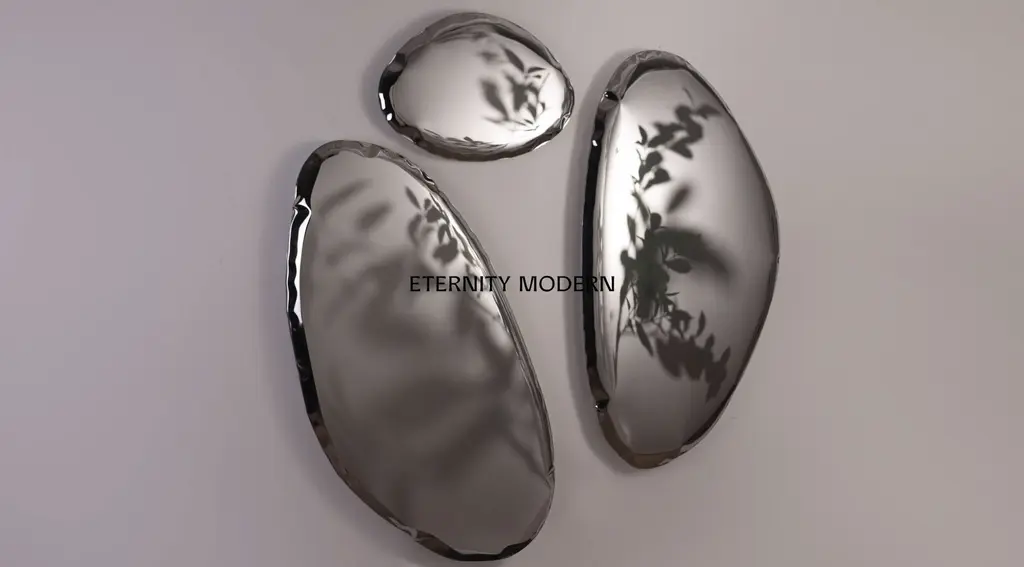 Reminiscent of liquid droplets, the Tafla Abstract Wall Mounted Polished Stainless Steel Elliptic Drop Mirror is a tridimensional mirror that combines the world of design, art, and technology to create a shimmering, stunning showpiece. The Tafla Elliptic Drop Mirror makes a spectacular interior element both alone and in clusters, adding a modern and distinctive touch to any space. Available in three sizes.