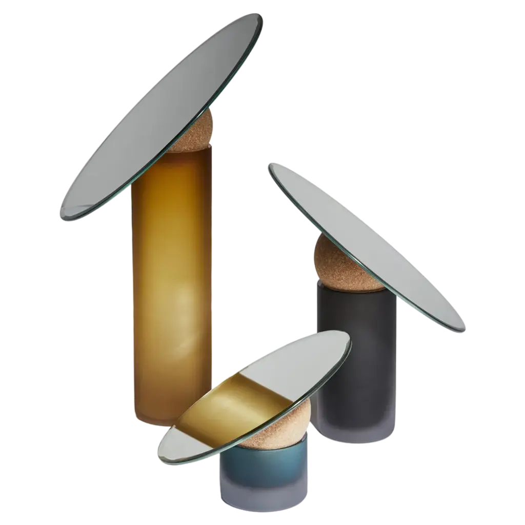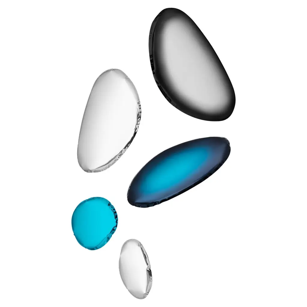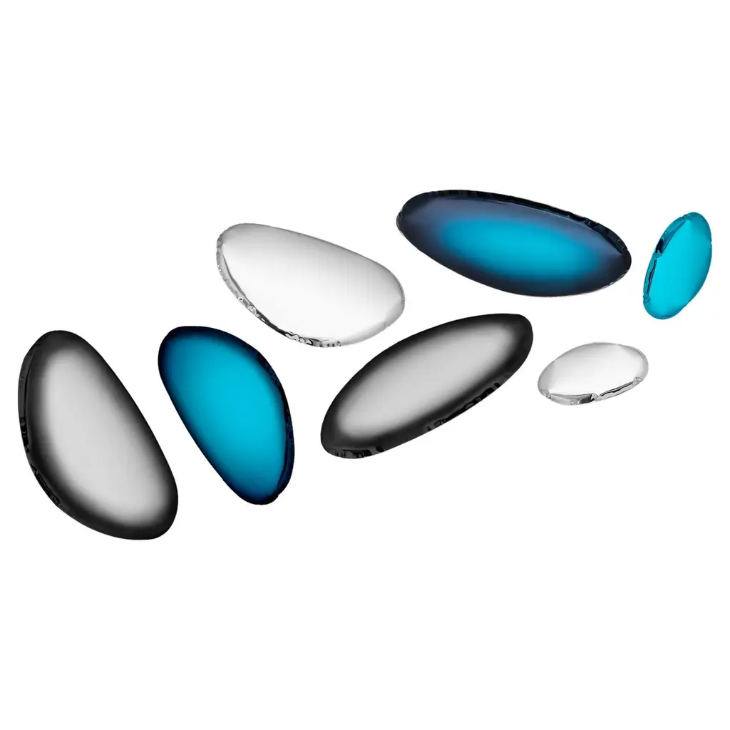 Tafla mirrors by ZietaPolished stainless steelTafla O2 (qty 1)Height: 59.06 in (150 cm)Width: 38.19 in (97 cm)Depth: 2.37 in (6 cm)Tafla O3 (qty 2)Height: 48.82 in (124 cm)Width: 31.11 in (79 cm)Depth: 2.37 in (6 cm)Tafla O4 (qty 2)Height: 48.43 in (123 cm)Width: 25.2 in (64 cm)Depth: 2.37 in (6 cm)Tafla O5 (qty 2)Height: 23.63 in (60 cm)Width: 15.75 in (40 cm)Depth: 2.37 in (6 cm)--The objects that constitute ZIETA universe function not only as independent works of art, but they take on a stellar dimension when arranged together in larger sets. Bounded by common gravity and revolving along mutual orbits they can create astonishing compositions. The closeness between the elements enlivens the steel surfaces with luminous interactions that multiply reflections and refract lights.The possibilities of arrangement are endless. Therefore, in order to guide you through the steel universe of ZIETA, we have prepared an atlas of the most captivating constellations. The objects of this universe are mirrors TAFLA O and TAFLA C as well as CRYSTAL and smaller KAMYKI and PIN. At the end of this atlas you will find an exhaustive list of all the constellations. They have been codified, dimensioned and laid out on standard walls, in order to facilitate the choice of the best composition for your interior.