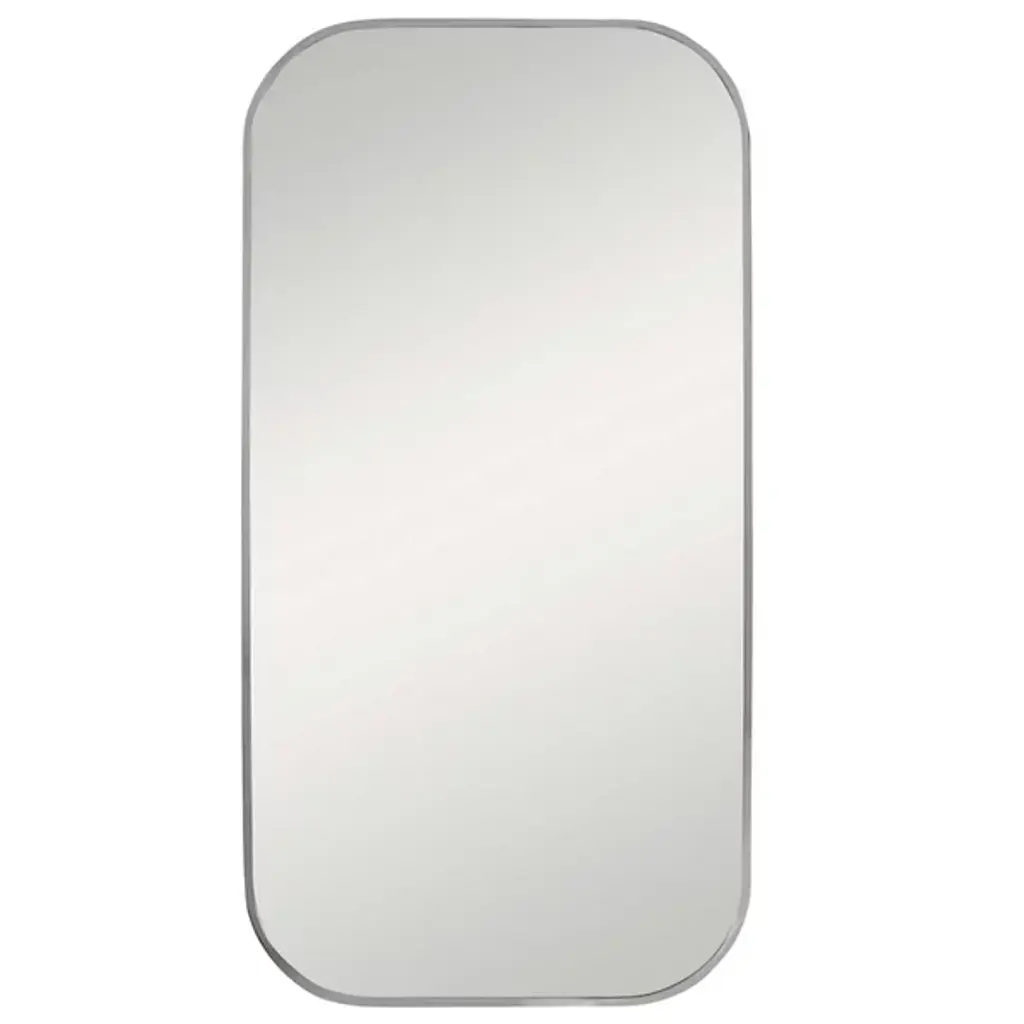 A simple piece full of charm, the Taft Mirror from Uttermost provides a clean and wide view of the space around it. Mounting directly to the wall, this piece features a thin frame made of smooth metal that gently borders the reflective surface. The rounded edges add a sense of visual playfulness while providing an appealing shape that works with a range of home styles.