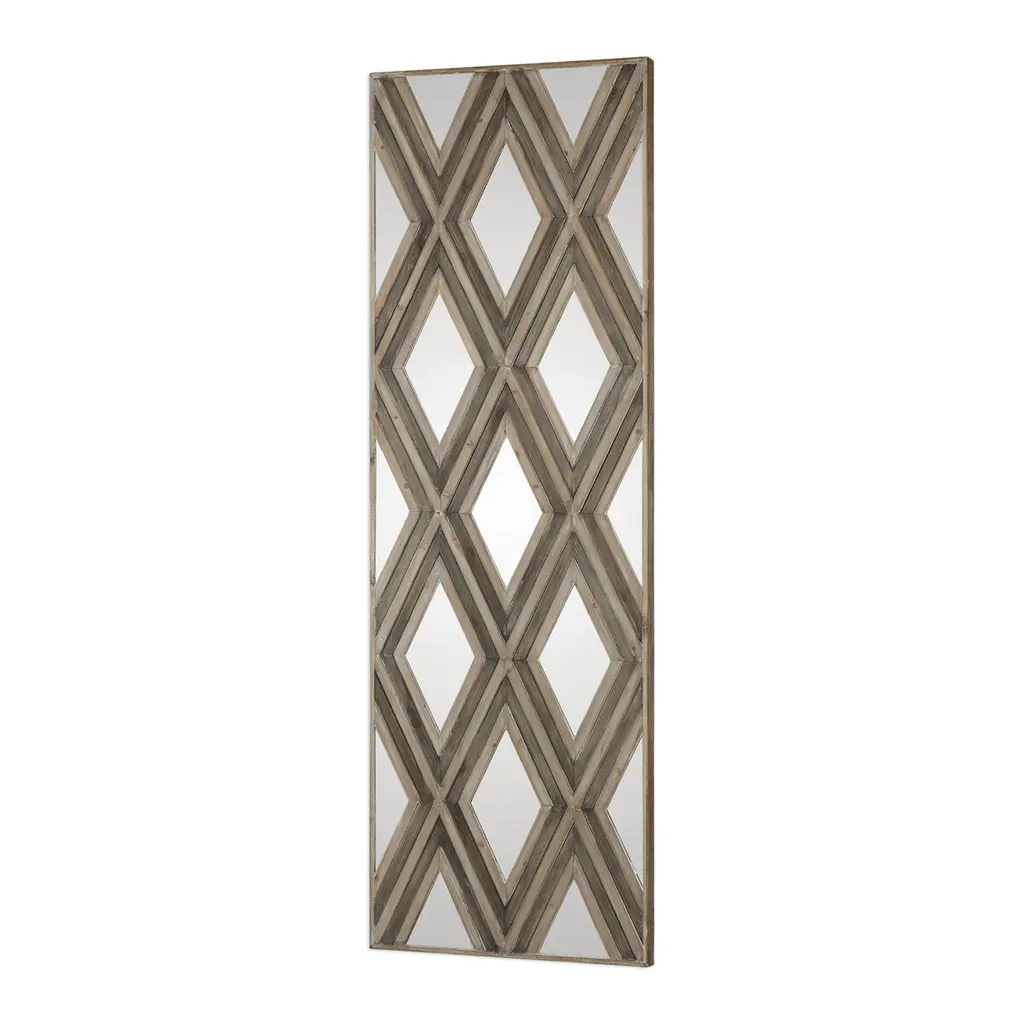 An Updated Blend Of Casual And Contemporary With Mirrored Accents, Layered With Fir Veneers In A Geometric Argyle Pattern, Finished In Ivory And Chestnut Gray.