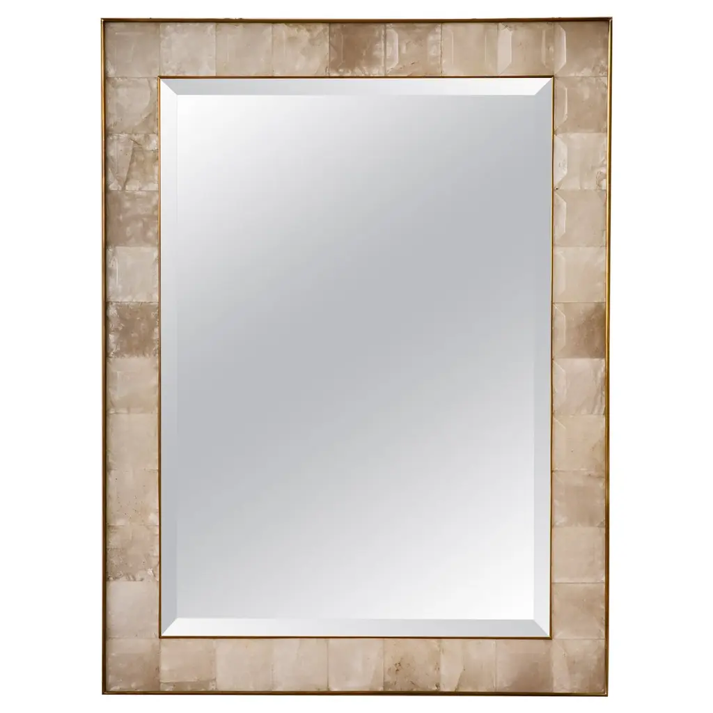 Our beveled rectangular Taj Mirror has a clean organic modern vibe that can work in a variety of interiors. Each of the natural mother of pearl tiles are laid by hand and the mirror is wrapped in a soft brass frame. Ships In 4-6 Weeks Soft Brass Frame Hand Laid Natural Mother of Pearl Tiles Beveled Glass This image is for illustrative purposes only. The colors shown are accurate within the constraints of lighting, photography, and the color accuracy of your screen.