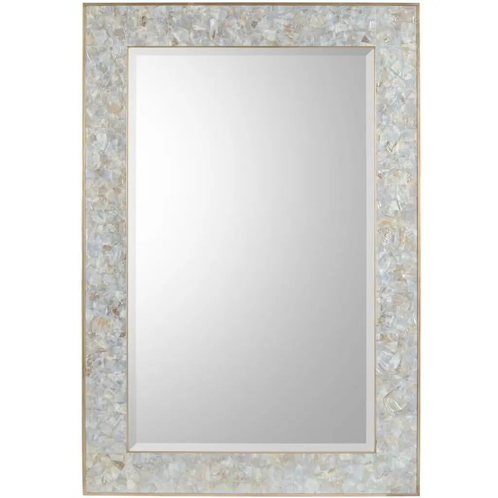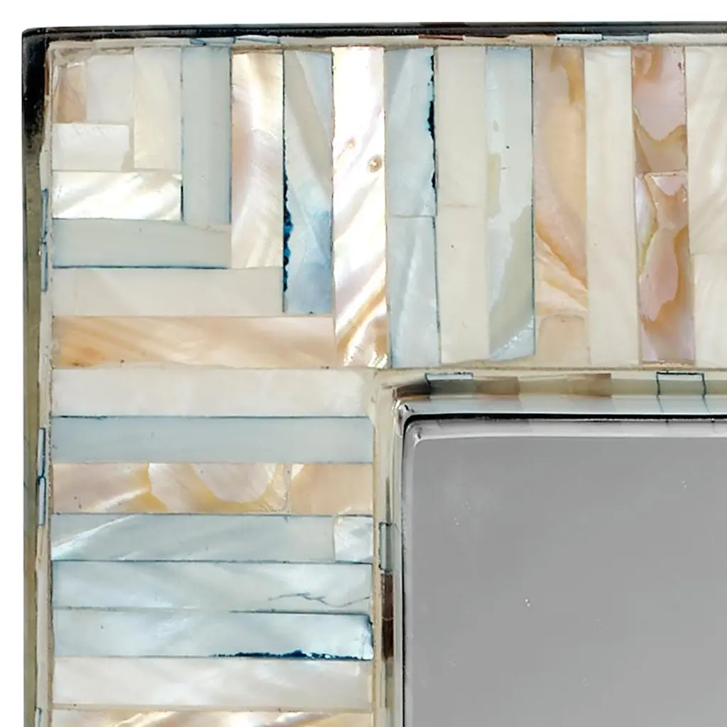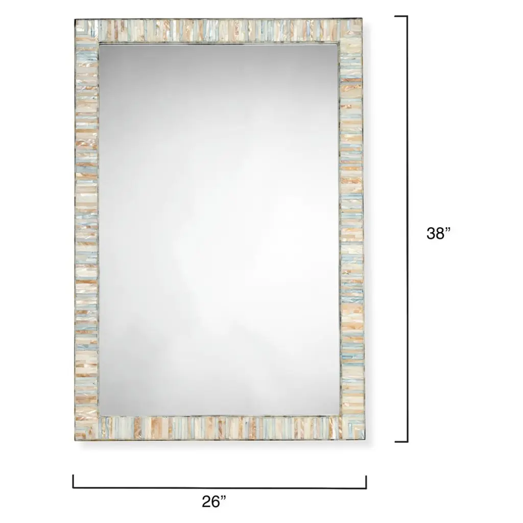 Talia Coastal Beach Blue Capiz Rectangular Wall Mounted Mirror