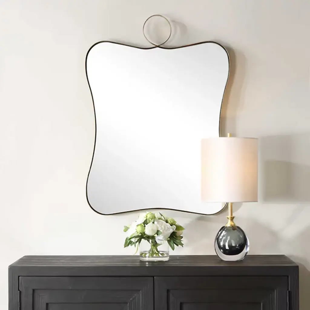 The Talia Vanity Mirror from Uttermost reflects Jim Parsons' talent for updating classic forms. The stainless steel frame's curved outline puts a fresh spin on traditional vanity designs. Its plated finish develops a unique patina over time, adding character to the piece. This mirror excels in powder rooms and dressing areas, where its proportions create a perfect balance between function and style. The fusion of old-world inspiration with updated materials makes it particularly suited for transitional interiors.