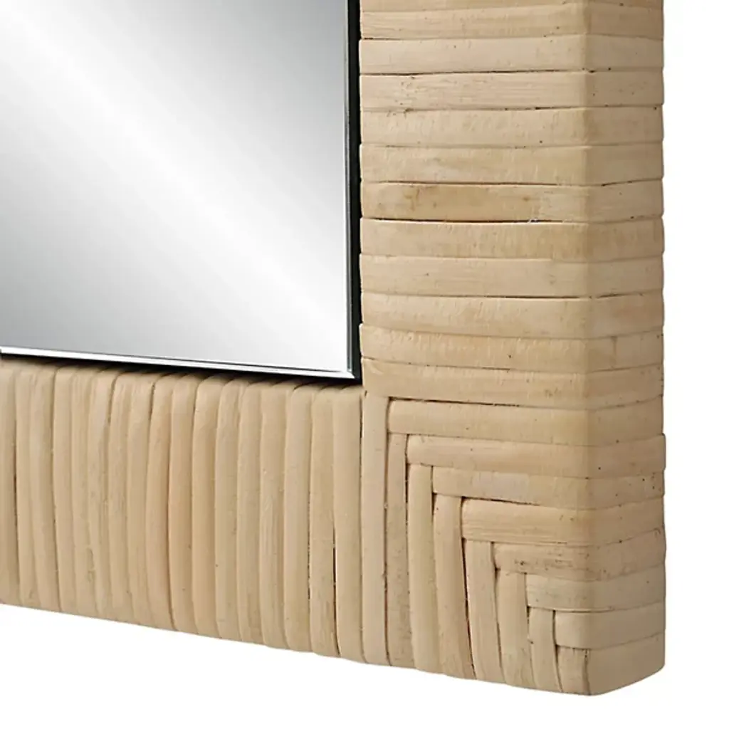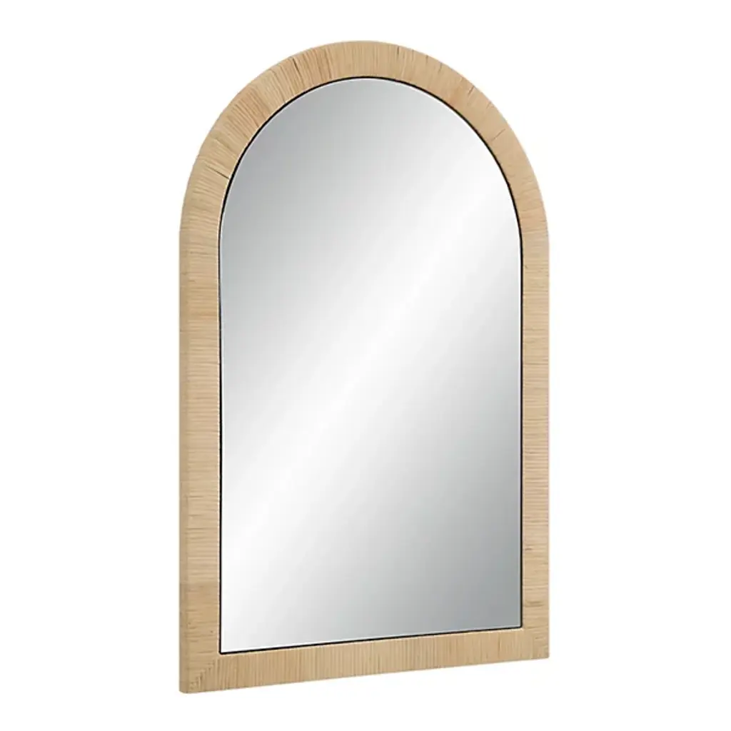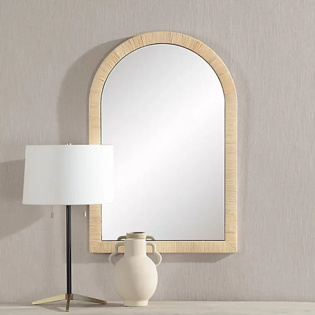 Elevate your living space with the Tally Arch Rectangular Mirror from Renwil. It features a durable rattan frame and a timeless arched design. Its natural wood finish complements any décor, while the tall silhouette adds a dramatic and elegant touch. Equipped with a D-Ring hanging system for easy installation, this mirror enhances any room by creating an illusion of space and light. It is perfect for adding sophistication and charm to your home.