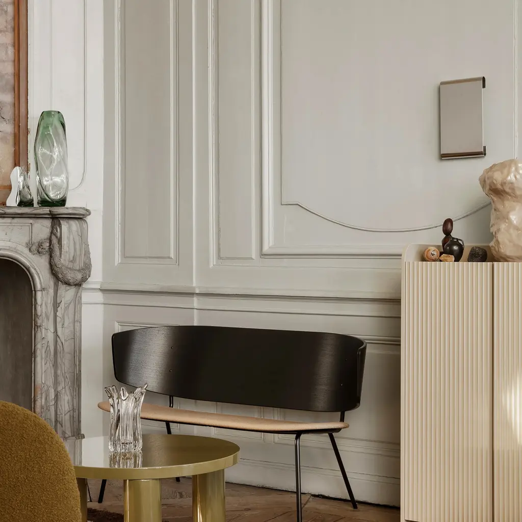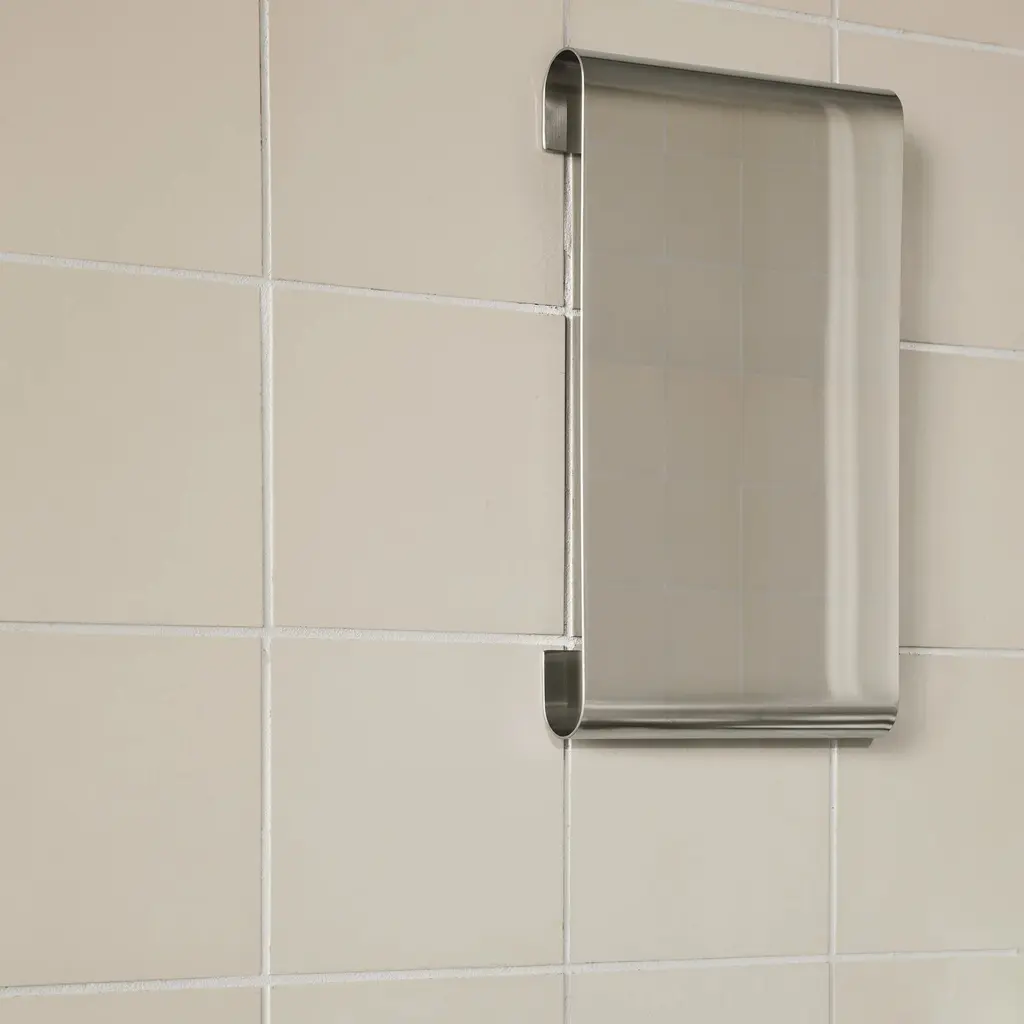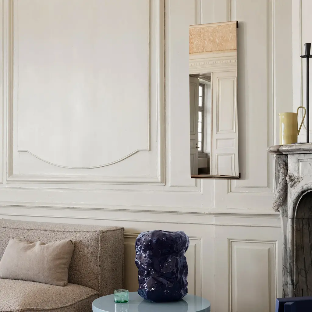 A modern mirror that looks like wall décor, the Ferm Living Tangent Mirror features curved edges that make it seem like it floats in mid-air. The simple but striking design offers more than a reflective surface that makes rooms appear larger. Indeed, Tangent creates subtle optical illusions with its bent edges, as reflections of people or objects at a distance of more than 1.5 meters appear slightly distorted at the top and bottom. Made from 304 stainless steel, this wall-mounted mirror boasts a sleek mirror polish. You can install it horizontally or vertically, in a living room, bedroom, or entrance hallway. The Ferm Living Tangent Mirror comes in two sizes, to suit any space. Please keep in mind that this mirror should always be fully supported at the back before installation to eliminate the risk of bending, which can cause reflections to appear distorted.