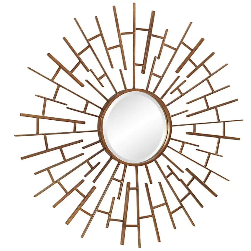 The Tangled Mirror from Uttermost represents designer Renee Wightman's innovative approach to circular design. Interlocking iron rods of different lengths create an organized chaos that draws the eye inward. The precisely engineered structure establishes masterful metalwork, with each rod carefully positioned to maintain visual balance. This mirror particularly suits spaces that need an architectural element. Its artistic composition makes it equally at home in both minimalist and maximalist settings.