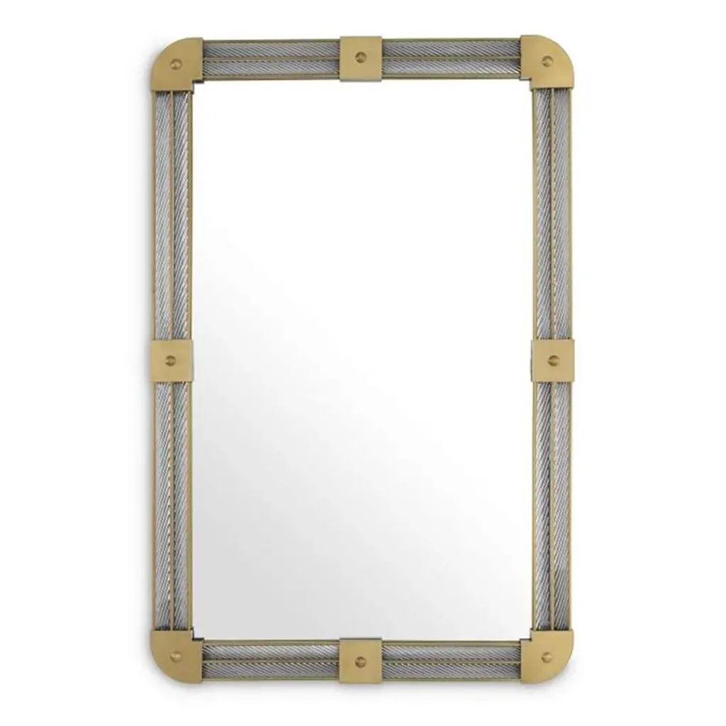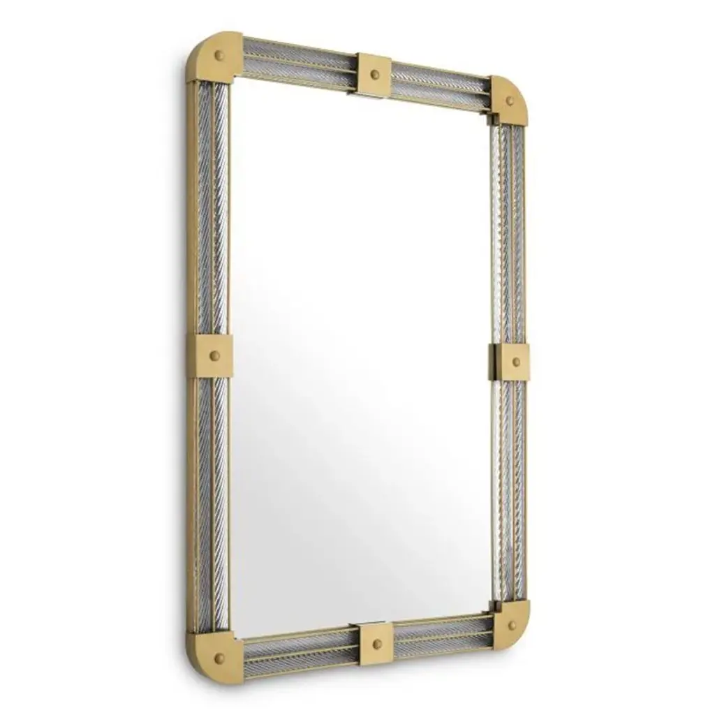 Tank Mirror has a frame of handmade clear glass and antique brass finish details. Can be hung horizontally or vertically. L80xH122xD5 cm