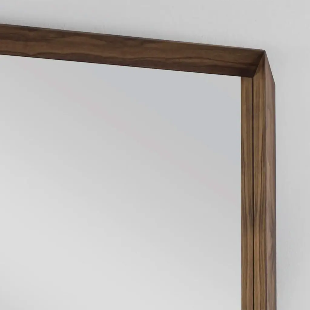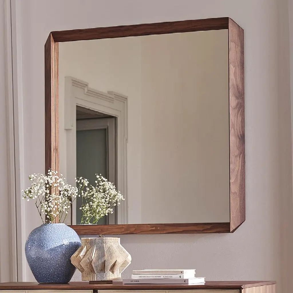 Mirror Square Taorma with frame in solidwalnut and with clear mirror glass. With lacqueredback mirror panel in black matte finish.Also available in L90xD07xH90cm, price: 2650,00€.Also available on request in walnut in moka stained or wenge stained finish.Also available on request in Taorma Square Mirror.