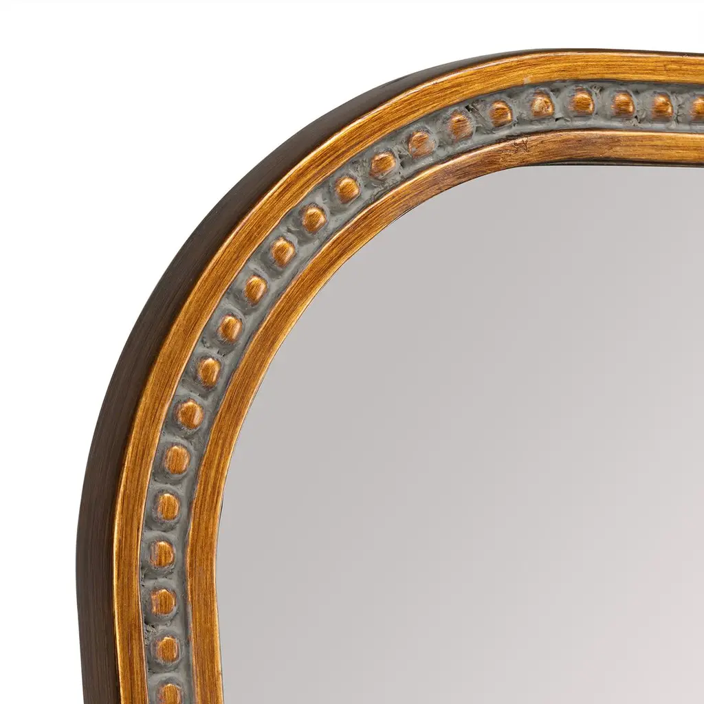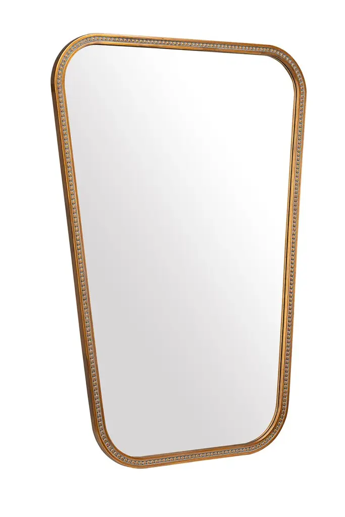 The Taper Mirror elegantly tapers inward toward the bottom and features a mid-century shape encased in a classic beaded frame. The gilding complements the beaded detailing, adding a touch of elegance and vintage charm to the overall design. This vintage-inspired piece is exclusive to the Heritage Mirror Collection—a thoughtfully curated line inspired by mirrors from a personal vintage collection. With delicate tapering lines, this mirror brings a tailored charm that elevates every glance.