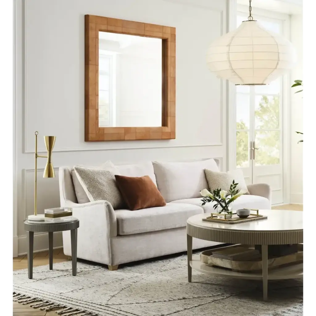 The Taurus Wall Mirror is designed to be just as much an art piece as it is a decor. Made from richly dyed hair-on-hide pieces arranged in a modern quilted pattern and finished with matching double-stitch detail, this mirror is a large-scale statement for the most impressive of spaces.