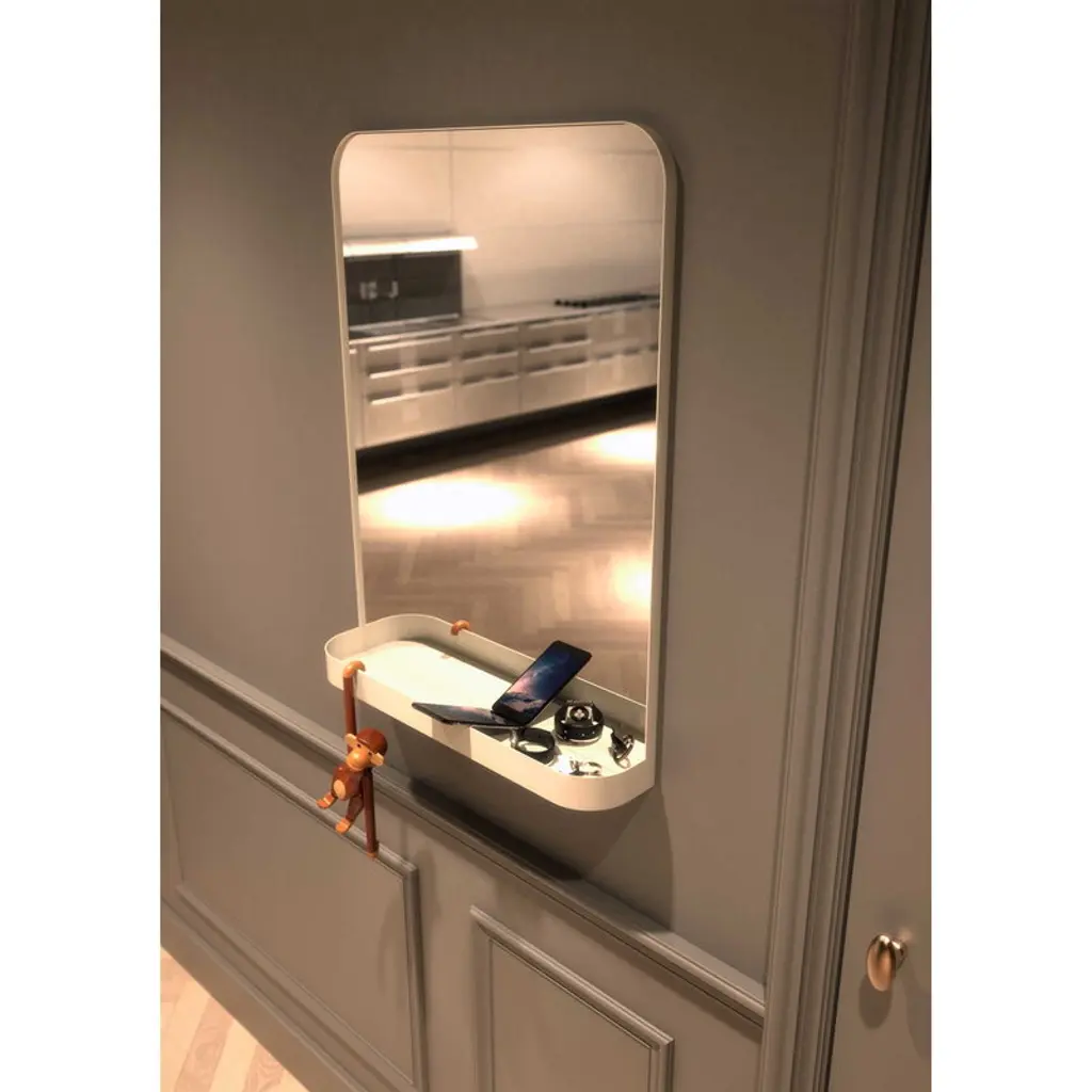 The TB600 mirror by the Danish Frost features a robust metal frame and a small shelf with edges. The versatile and minimalist mirror is equally suitable for the hallway, bathroom or dressing room, and the shelf can be used, for instance, for storing cosmetics, jewelry or keys. The TB600 mirror was designed by Daniel Lavonius-Jarefeldt.