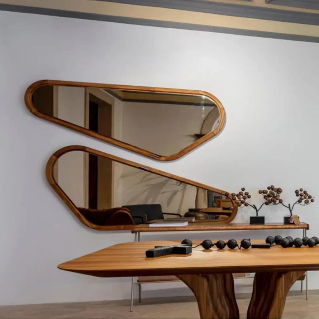 Teak Wood Wall Mirror With Wing-Like Design And Natural Finish - Ali Line, Right