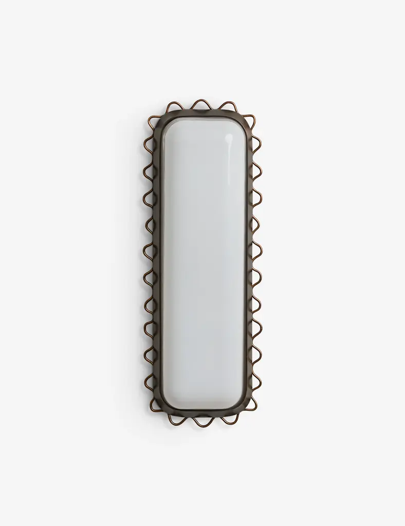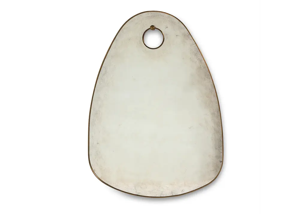 Unique and charming, the Tear Drop Mirror features a playful shape and beautiful brass detailing. Gorgeous above a vanity or dresser, adding a chic touch to the space.Dimensions: 32" W | 1.75" D | 44" H