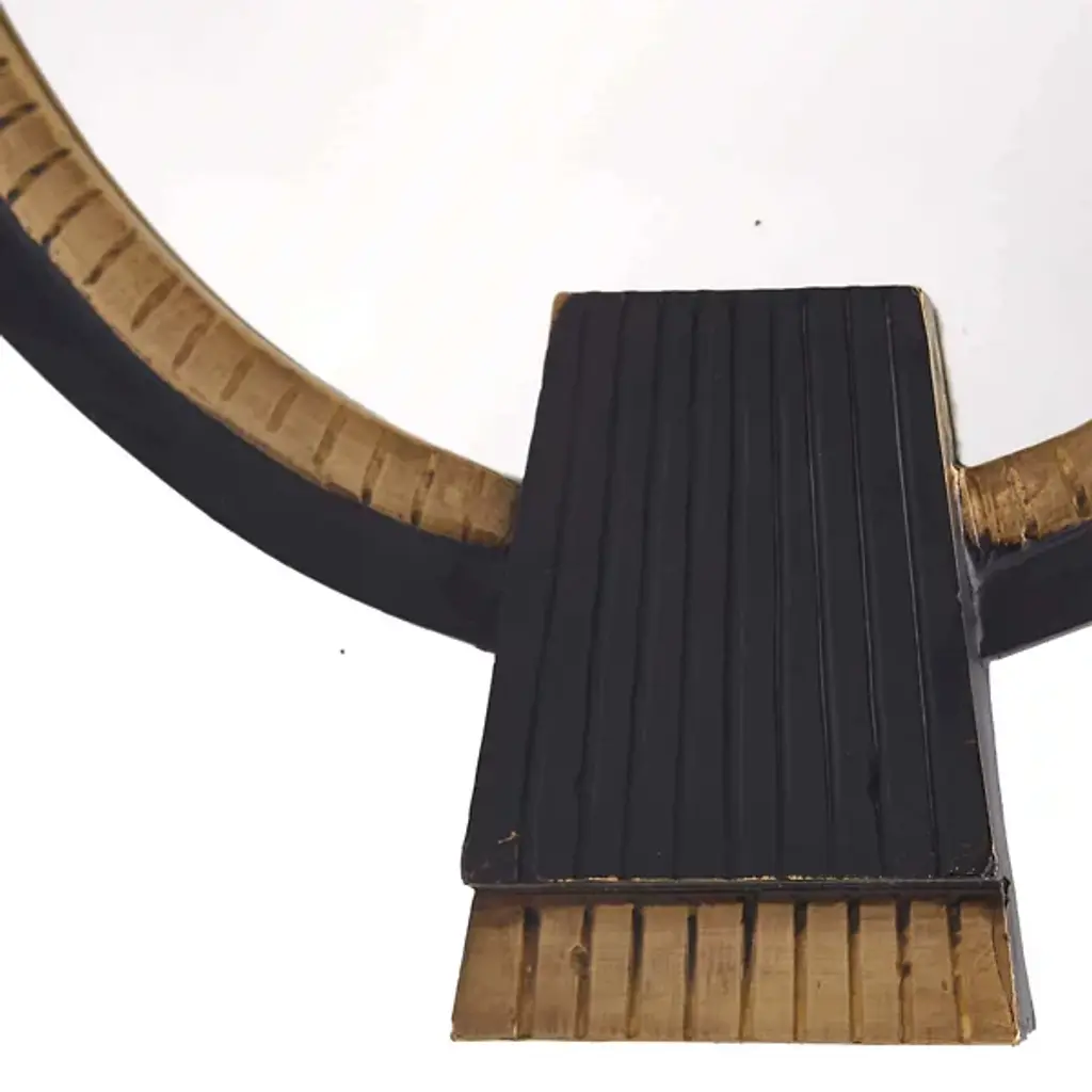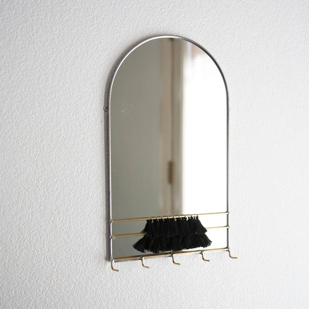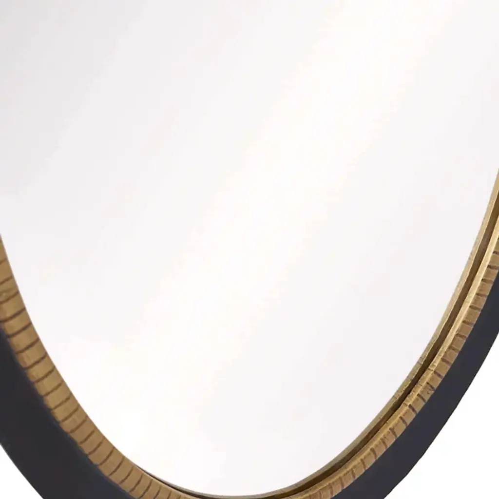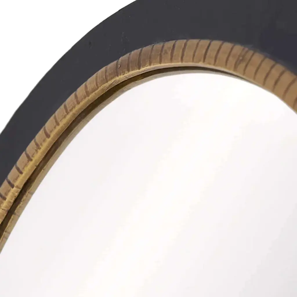 Bring elegance to your decorative arrangement with the Tedesco Mirror from Arteriors. Your mirror is defined by its ovular shape. Inspired by handcrafted jewelry, this vertically hanging mirror is framed by wood and brass. A crowning applique is fitted with a hanging cleat for your convenience. Subtle, ribbed detailing near the mirror’s edges is Tadesco’s artisanal modern aesthetic. The Tedesco Mirror elevates the look of your living space while giving you a chance to check your reflection before going out.