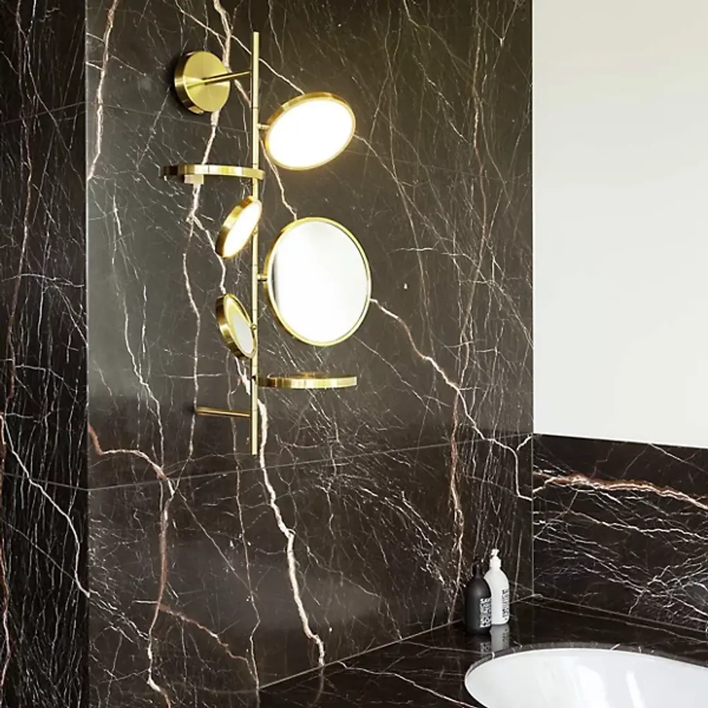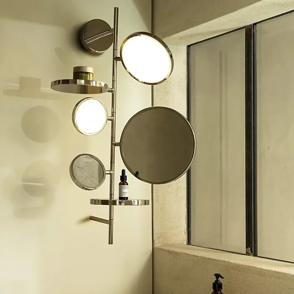 Freshen up or entertain yourself in front of the bright and reflective dots of the Tell Me Stories Lighted Mirror with Storage from DCW editions. The piece represents designer Giulia Liverani’s of creating astonishment, magic, and beauty while furnishing. Here, Liverani starts with a compact backplate and slender down rod that evokes a tree’s branch. This metal branch produces a pair of convenient shelves. Playing with scale, 2 mirrors seduce with a crisp reflection. The dynamic circles on top contain an array of LEDs that generate a comfortable, uniform glow and a delightful silhouette.
