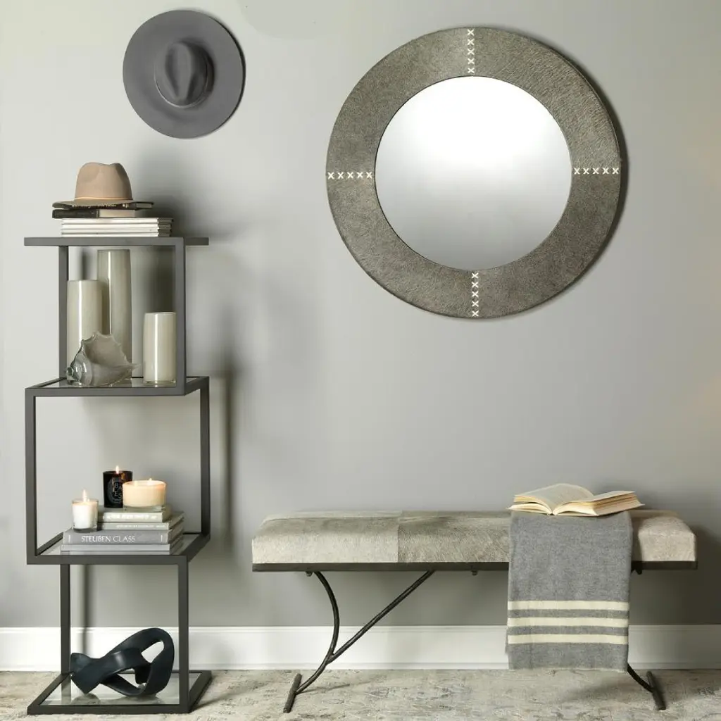 Tessa Modern Classic Round Grey Hide Wall Mounted Mirror - 36d