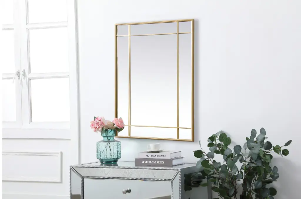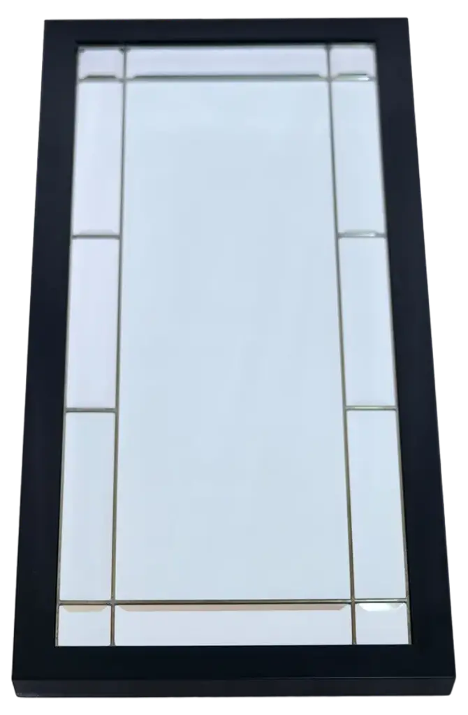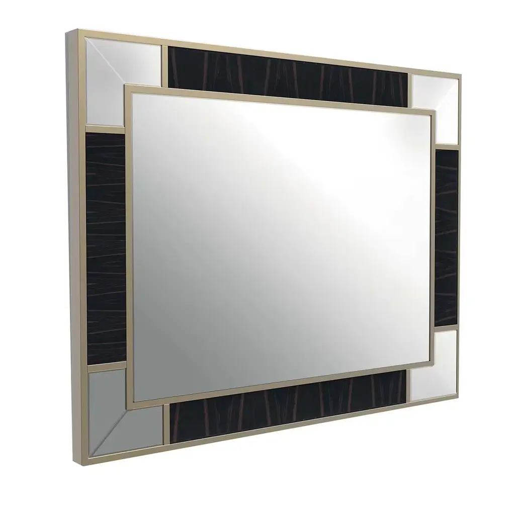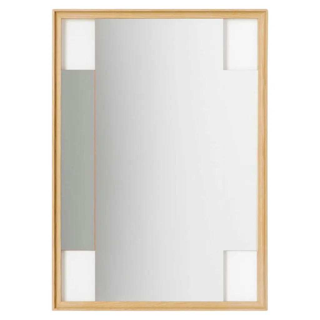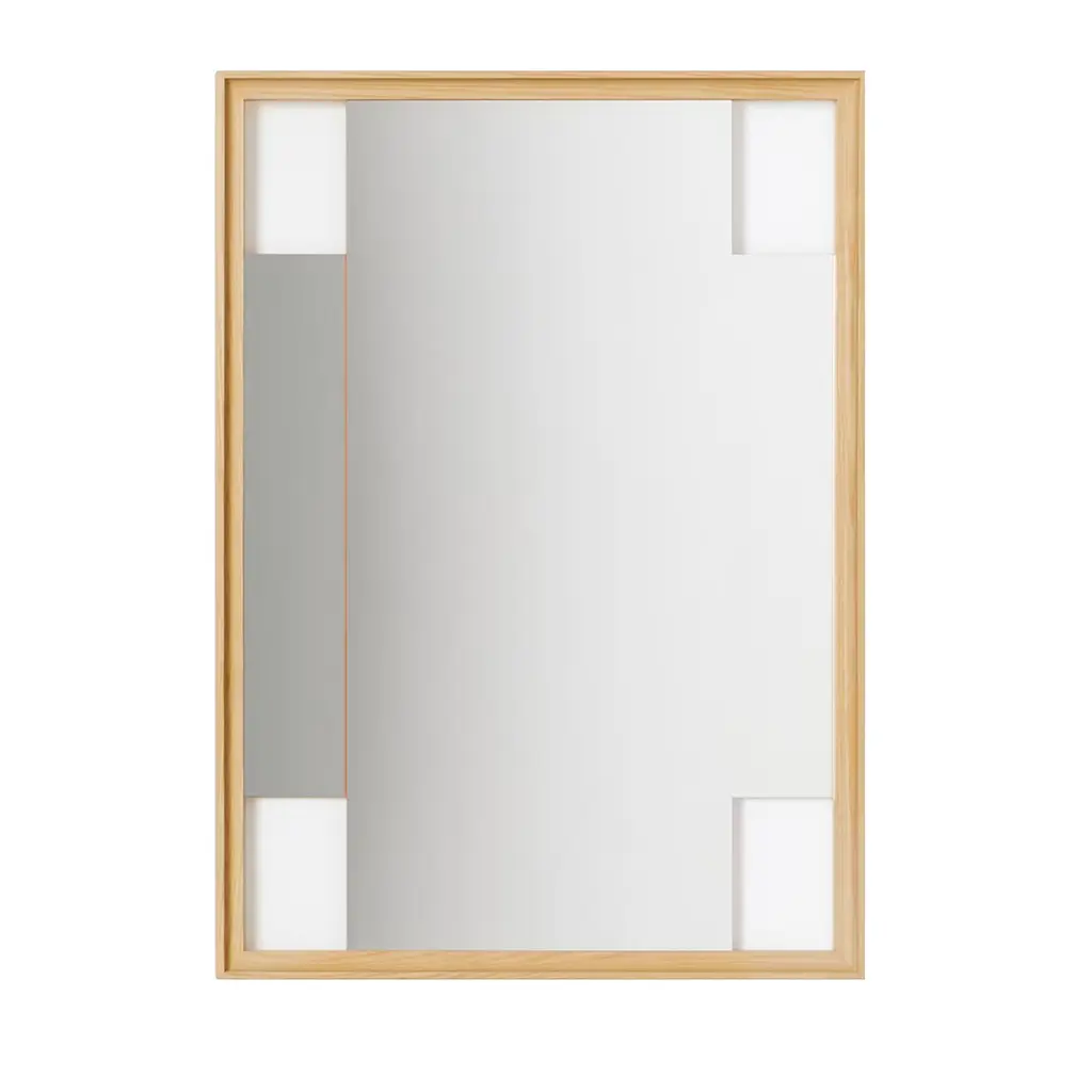 This vertical silver mirror features a natural Havana finish wooden structure.