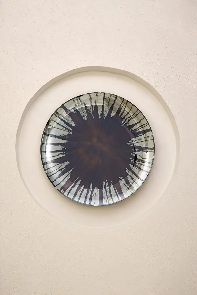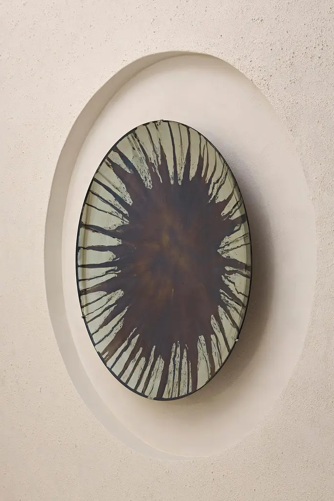 The Eye of the Universe II Mirror by HomaDimensions: D 97 x H 7 cmMaterials: Concave Mixed Technique Mirror, Hanger: Brass.HOMA is a contemporary design atelier based in Istanbul. The atelier’s trademark processes are handblown glass, glass fusing and mirroring, created through the use of multidisciplinary techniques and materials. Over time, with meticulous research and experimentation HOMA has acquired unique expertise in mirrors, lighting and home interior objects thus elevating things of function to the status of art. Handcraft HOMA has discovered one of the last remaining masters of handcrafted mirroring in the Eastern Mediterranean. The atelier is original in its simultaneous use of different techniques to create organic and flowing mirror shapes. Each piece celebrates reflection, translucency, movement, light, time, multiple layering and aesthetic, spontaneity…Object HOMA’s pieces are an exploration of organic, abstract, as well as unexpected flowing lines and shapes. Our design service offer is presented in a catalogue of over 50 designs in fluid and geometric shapes achieved through multidisciplinary techniques.Materiality Through the use of mixed textures and the layering of mirror elements unexpected effects are created on glass, which play with one’s visual perception as well as the surrounding space. Glass, stone, marble, messing mirror techniques, bronze, wood and clay are just some of the Earth’s materials that find their way into HOMA’S offerings. HOMA offers a vast materials library.Architecture Formally trained in interior architecture, HOMA founder, Tuğba Koç has transformed her knowledge and experience into layered aesthetic design objects. Now, with a team of architects and artisans, Tuğba applies her hands in a workshop environment on interior and exterior objects to enrich earth-derived, breathing, living materials. HOMA’s interior objects are informed by art and driven by the philosophy that nothing artificial should be allowed to interfere with the energy of one’s living environment.