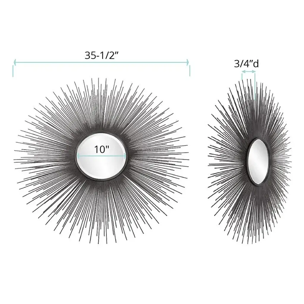 The Helios mirror takes a modern twist to a classic starburst design. The hand crafted frame, with all of it's detailing, is completed in a graphite finish for an updated style. This mirror fits easily into both contemporary and modern farmhouse interior designs.