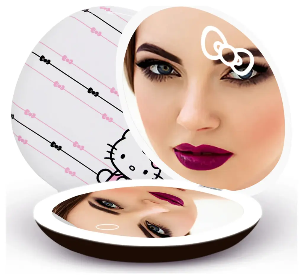 Impressions Vanity introduces the Hello Kitty ''The Stripe'' compact vanity makeup mirror. The must-have accessory for your every beauty enthusiast! If you''re looking to take your outdoor vanity experience to the next level, this face mirror with light is your ideal companion. Why do you need it? Well, this small hand mirror with light combines functionality and style like no other. Its smooth finish and adorable Hello Kitty design add a touch of charm to your everyday routine, making your beauty rituals more enjoyable. The iconic Hello Kitty Stripe on the top mirror not only adds a delightful flair but also reflects your inner Kitty with a Stripe. One of the standout features of our compact personal mirrors is the Daylight LED Lighting. Whether you''re getting ready in the bright sun or a dimly lit room, the adjustable brightness ensures you have the perfect lighting ambiance to help you achieve your desired look. No more makeup mishaps due to poor lighting! The dual-sided portable mirror with a 3x magnified top mirror allows you to achieve intricate makeup and grooming with ease. Additionally, the soft-touch sensor lighting makes it travel-friendly, ensuring you can stay fabulous on the go. Elevate your beauty routine with the Impressions Vanity Hello Kitty ''The Stripe'' LED compact mirror. It''s more than just an LED mirror; it''s a reflection of your style and an essential tool for your beauty arsenal. Get yours today and embrace the Hello Kitty charm in every makeup session!HELLO KITTY STRIPE: Elevate your outdoor vanity experience with the Impressions Hello Kitty Mirror''s smooth finishing and adorable The Stripe that adds a touch of charm and aesthetics to your beauty routineADJUSTABLE DAYLIGHT: Enjoy perfect illumination in any situation with our small travel mirror with light. The daylight LED lighting is adjustable, ensuring you achieve the desired light ambiance for flawless makeup application3X MAGNIFIED MIRROR: Achieve detailed and precise makeup with the dual-sided portable vanity mirror that includes a 3x magnified top mirror. Perfect for ensuring every detail of your look is impeccableTOUCH SENSOR: Enhance usability with the soft touch sensor, making it easy to operate the lighting ensures you can use our makeup mirrors during long journeys, ensuring you always look your bestWELL PREPARED GIFT: Elegant mirrors suitable for women of all ages; perfect for birthdays, Mother''s Day, Valentine''s Day, Halloween, anniversaries, Christmas, and other special days