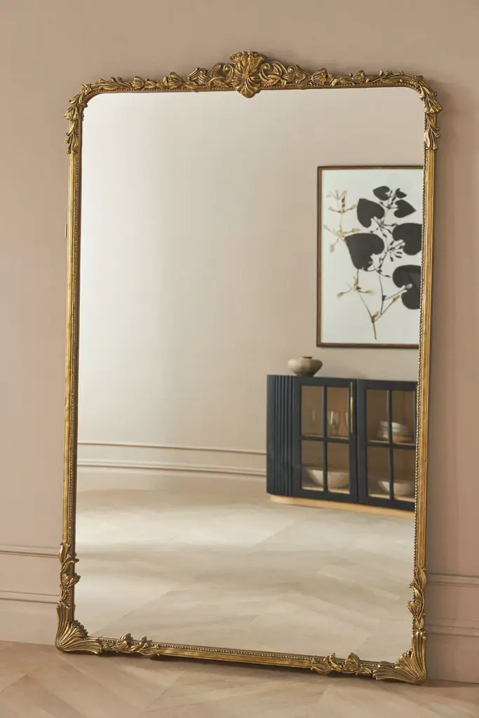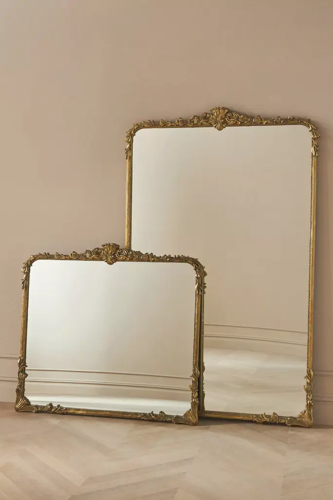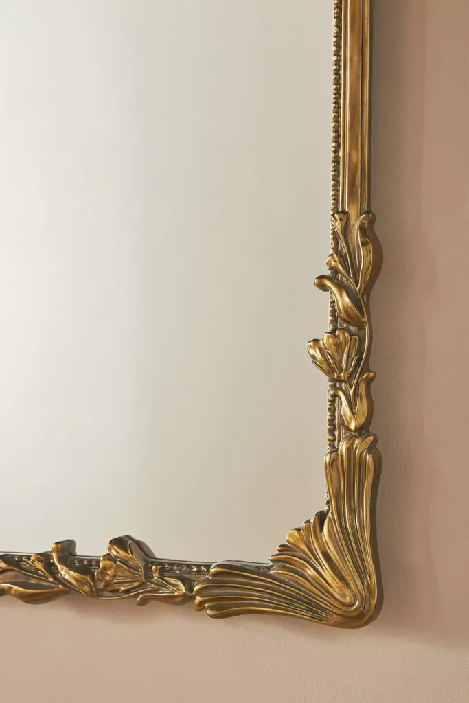Set in an intricately crafted frame, this antique-inflected piece displays age-old sophistication wherever it's placed.