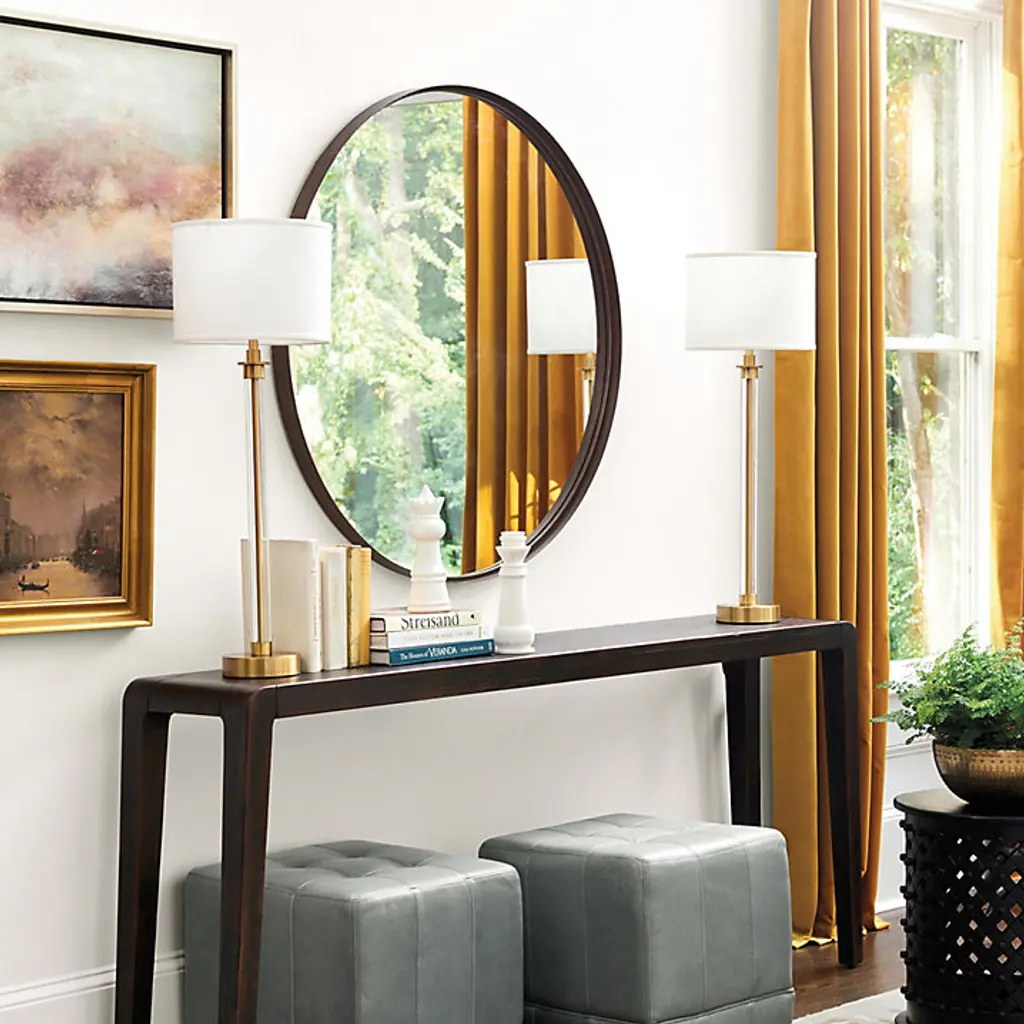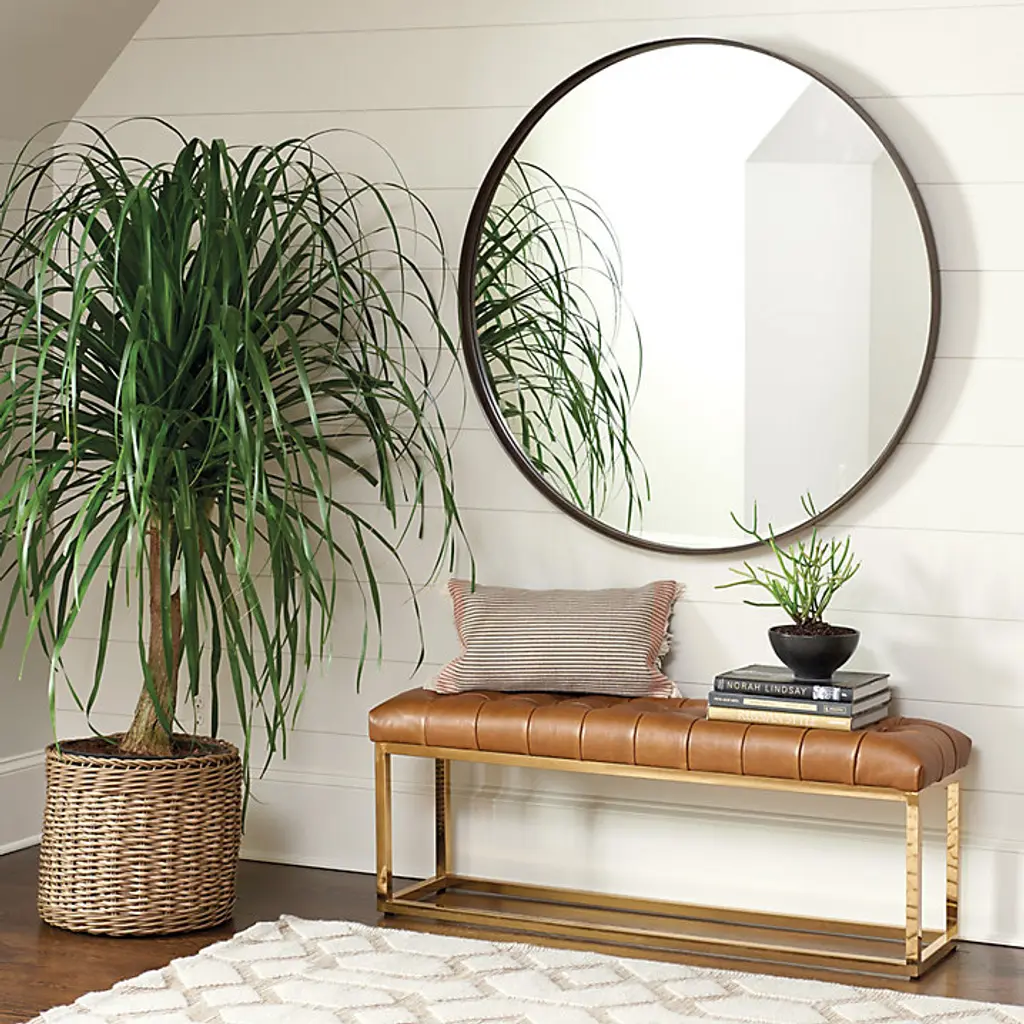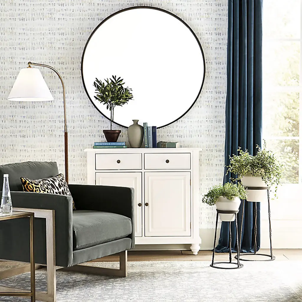 With its clean, unadorned lines, the Thomas Round Mirror epitomizes modern simplicity. The flat metal frame creates a light-filled banded border with just enough depth for contrast with the clear mirror. Thomas Round Mirror features:
