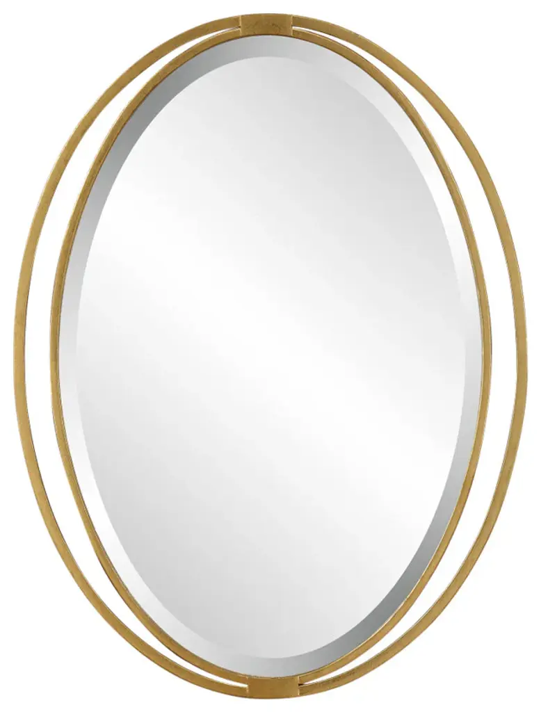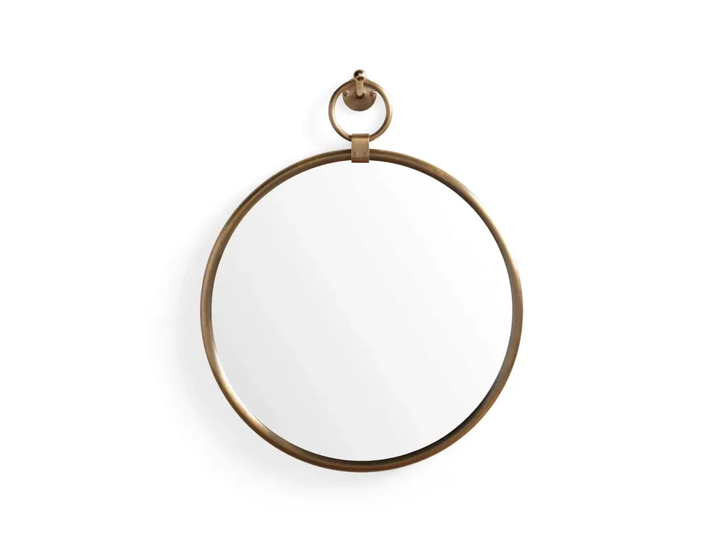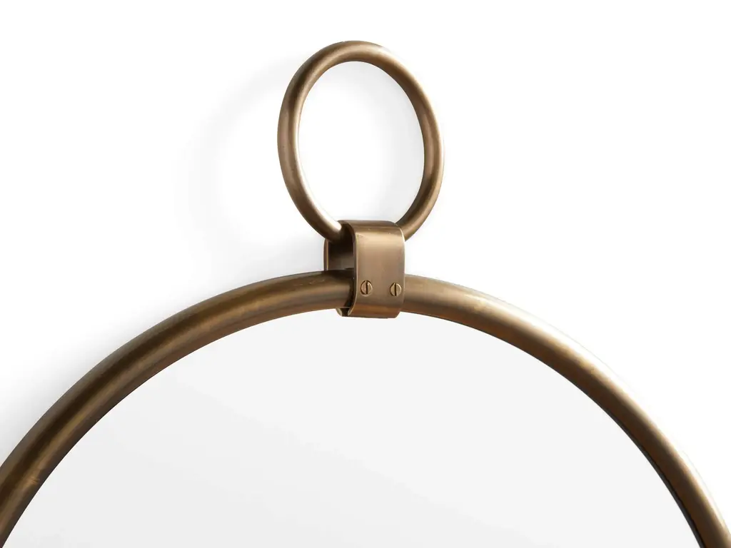 Inspired by the design of a classic pocket watch, each mirror features a thin brass frame with a loop embellishment at the top. Each mirror comes with a matching brass wall hook for an elegant appearance and easy installation. This mirror is available in three sizes and works equally well when hung individually or in a group.