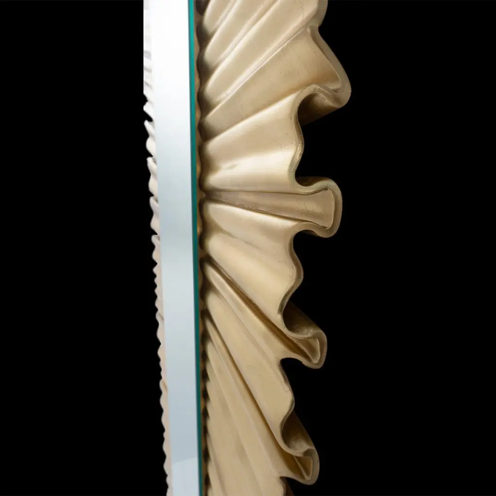 Mirror Thousands Leaf with hand-carved solid wood frame hand-painted with gold leaf paint.With bevelled mirror glass.Also available in silver paint finish or in coffee finish.