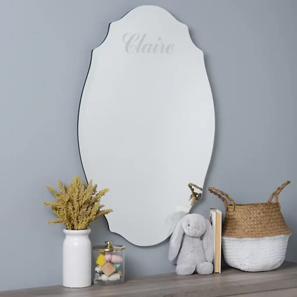 Bring simple refinement to your walls with the Tia Frameless Wall Mirror from Cooper Classics. This sophisticated oval-shaped design features graceful accents that curve inward at both short ends, creating a fluid, sculptural silhouette. Mount vertically or horizontally with D-ring hardware to add narrow and tall reflection or shorter and wide views over a higher piece of furniture.