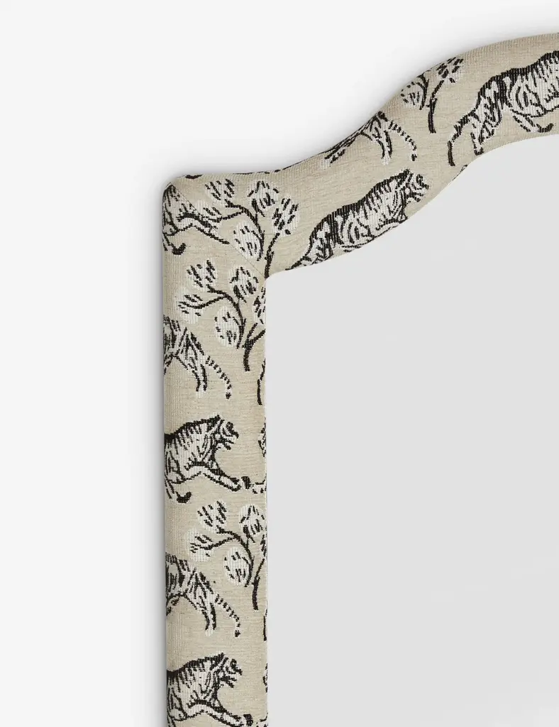 With its softly arched shape, this mirror adds a classic silhouette with a tailored touch. The frame is wrapped in Sarah's signature Tiger print, drawn by her son and styled into an intricate motif that brings vintage charm to any space. This full length mirror is from our exclusive Sarah Sherman Samuel collaboration and features all the trademarks of her warm, edited style.