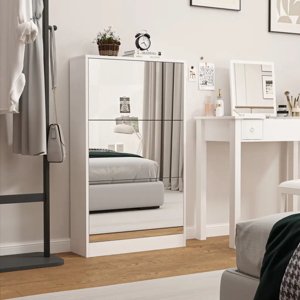 Tiramisubest Modern Shoe Cabinet, Mirror Shoe Rack Organizer With 3 Flip Drawers, Shoe Storage Cabinet For Entryway, Living Room, Dressing Room