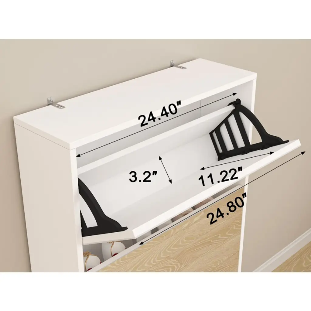 Discover the Modern Shoe Cabinet with Small Mirror Edge Gap, Mirror Shoe Rack Organizer with 3 Flip Drawers, Shoe Storage Cabinet for Entryway, Living room, Dressing room, a versatile addition to your home. Features include: - MDF+glass construction - 24.8L ¡Á 7.87W dimensions - 43.3lb sturdy build