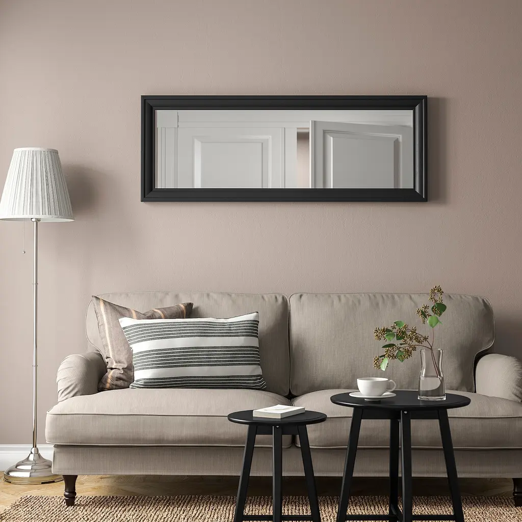 TOFTBYN Mirror - black 20 1/2x55 1/8 ". The mirror can be hung vertically or horizontally to suit your needs and your space. Provided with safety film - reduces damage if glass is broken. Suitable for use in most rooms, and tested and approved for bathroom use. Mounting fittings included.