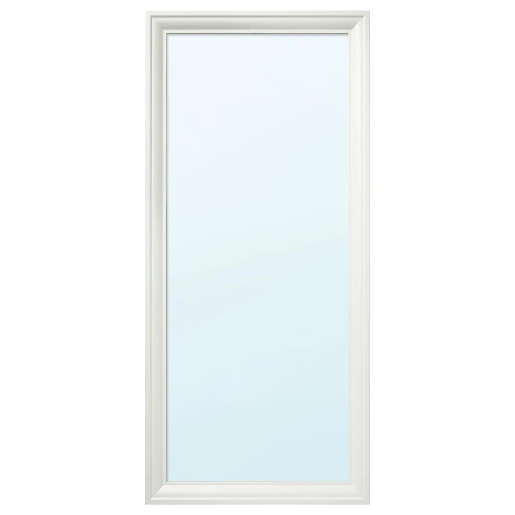TOFTBYN Mirror - white 29 1/2x65 ". Full-length mirror. The mirror can be hung vertically or horizontally to suit your needs and your space. Suitable for use in most rooms, and tested and approved for bathroom use. Provided with safety film - reduces damage if glass is broken.