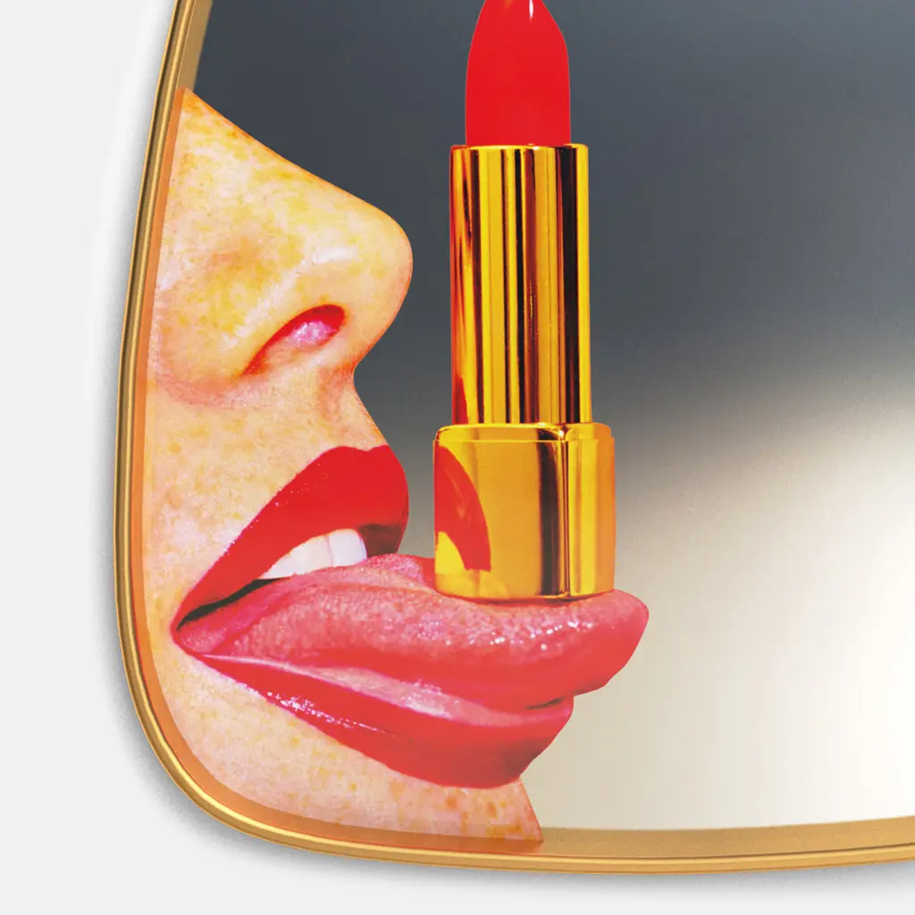 Life is too short for boring interior design decisions. The Seletti Toiletpaper lipstick tongue mirror helps you change your home décor instantly while also bringing any space to life with a tongue-in-cheek design and vibrant colors. Part of a collection that brings the Italian magazine’s surreal photographs to life in everyday objects, this mirror features one of Toiletpaper’s most easily recognizable artworks. Printed on one side, the Tongue image reflects a quirky take on interior design, helping you create a focal point anywhere in your home. Made of glass, the Seletti Toiletpaper lipstick tongue mirror features an MDF frame finished with a hand-applied brass foil in a gold color.