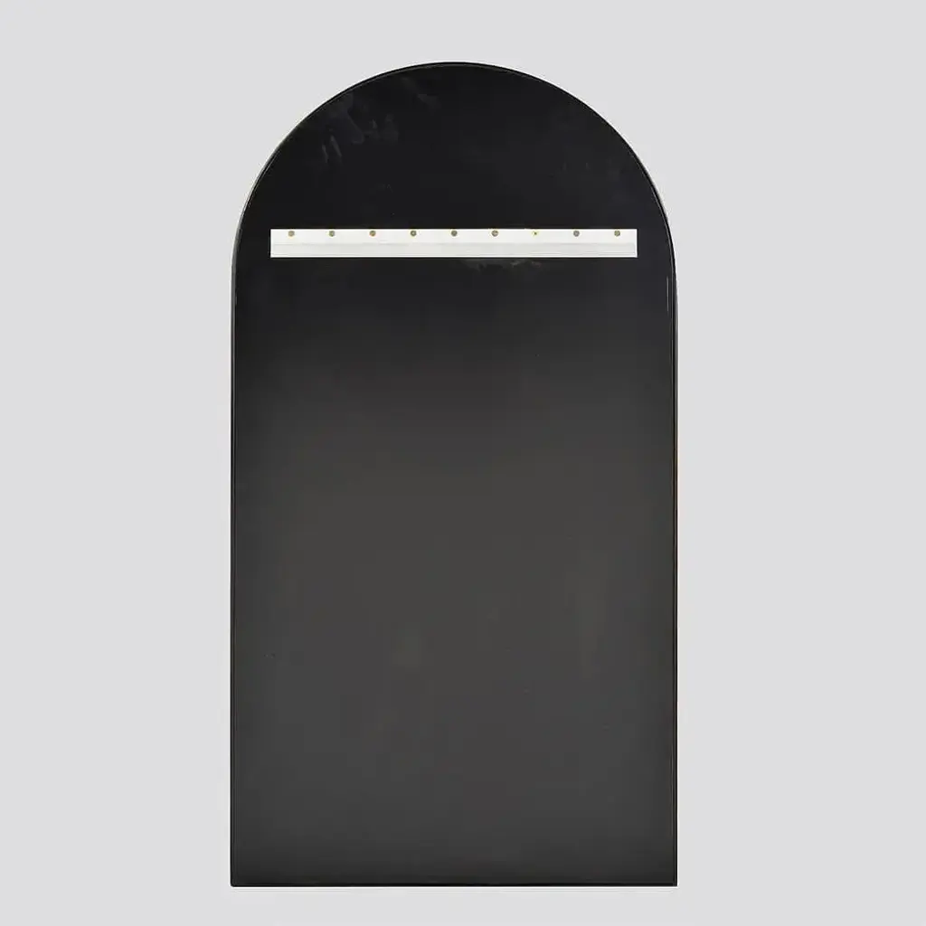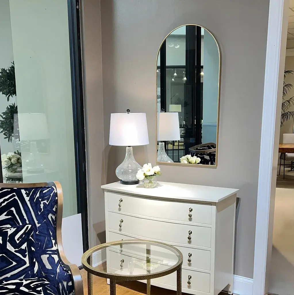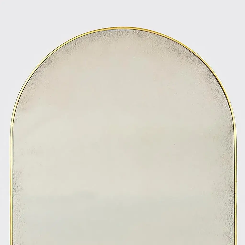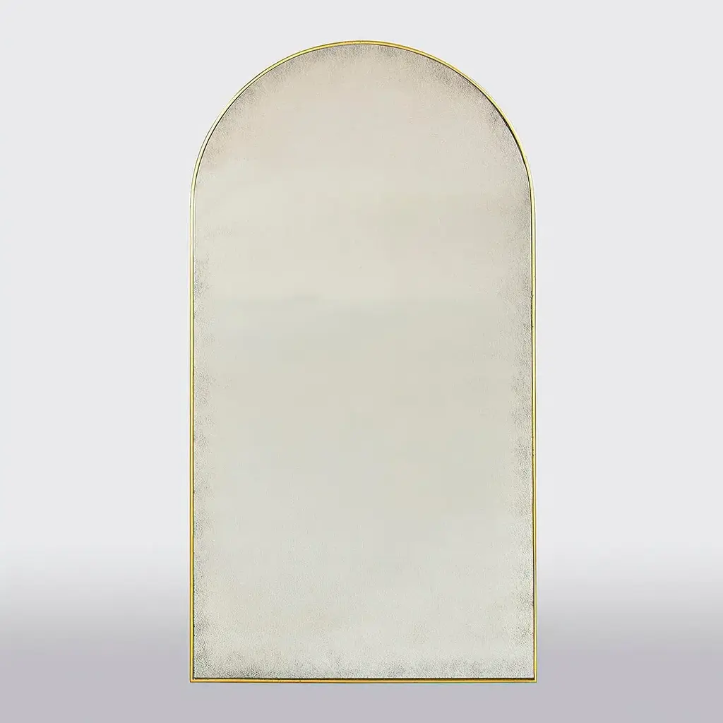 Arch top gilt mirror, with gilt metal frame and an antiqued mirror plate. Dimensions: 22" W x 1" D x 42" H
