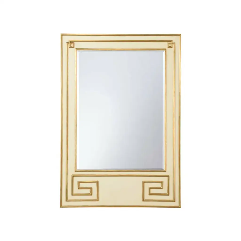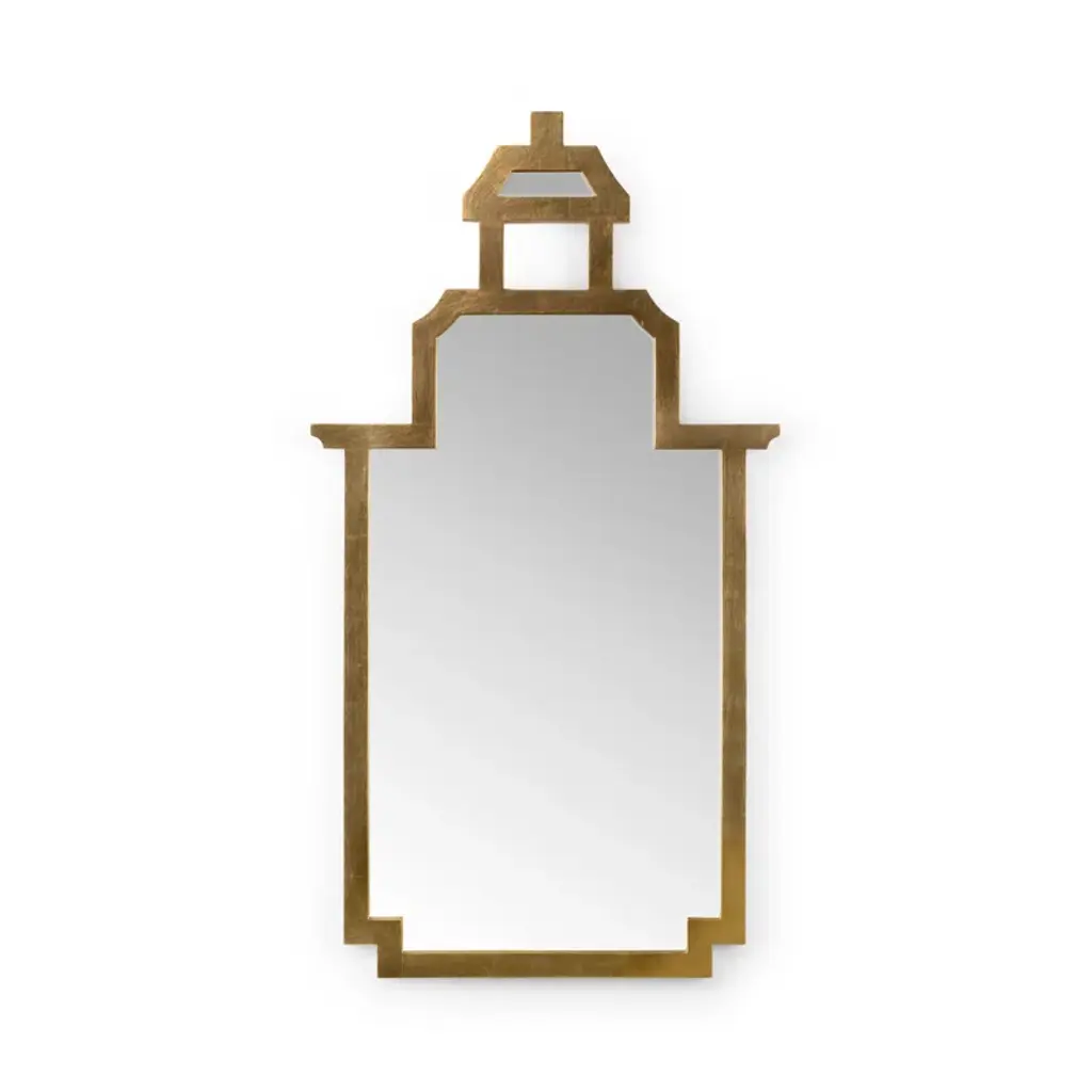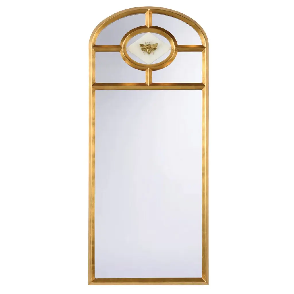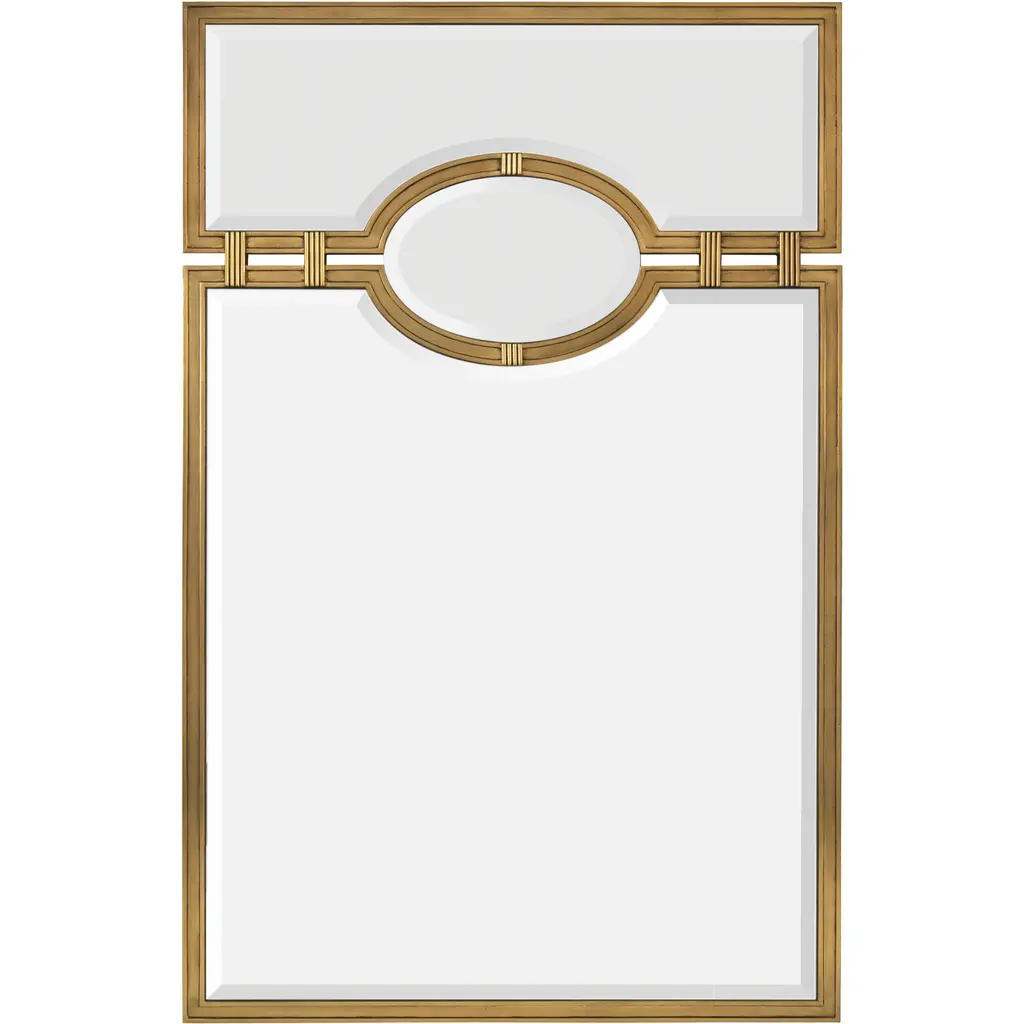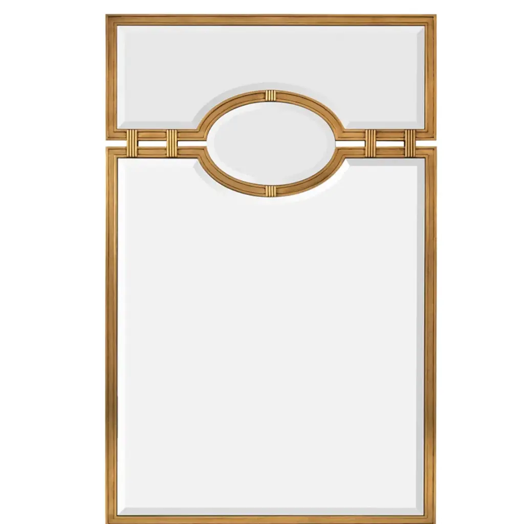 40"W X 64"H X 1"D A hand-carved wood frame finished in exotic gold separates and surrounds three individual panes of one-inch modern beveled mirrors. This mirror can hang vertically only.