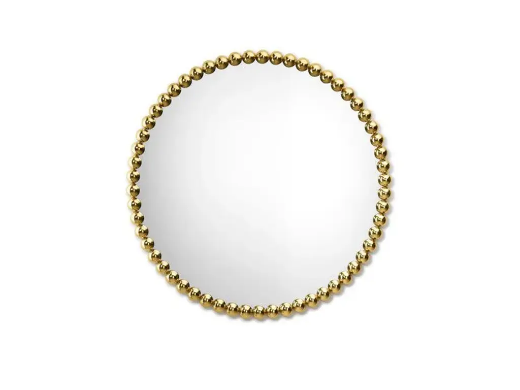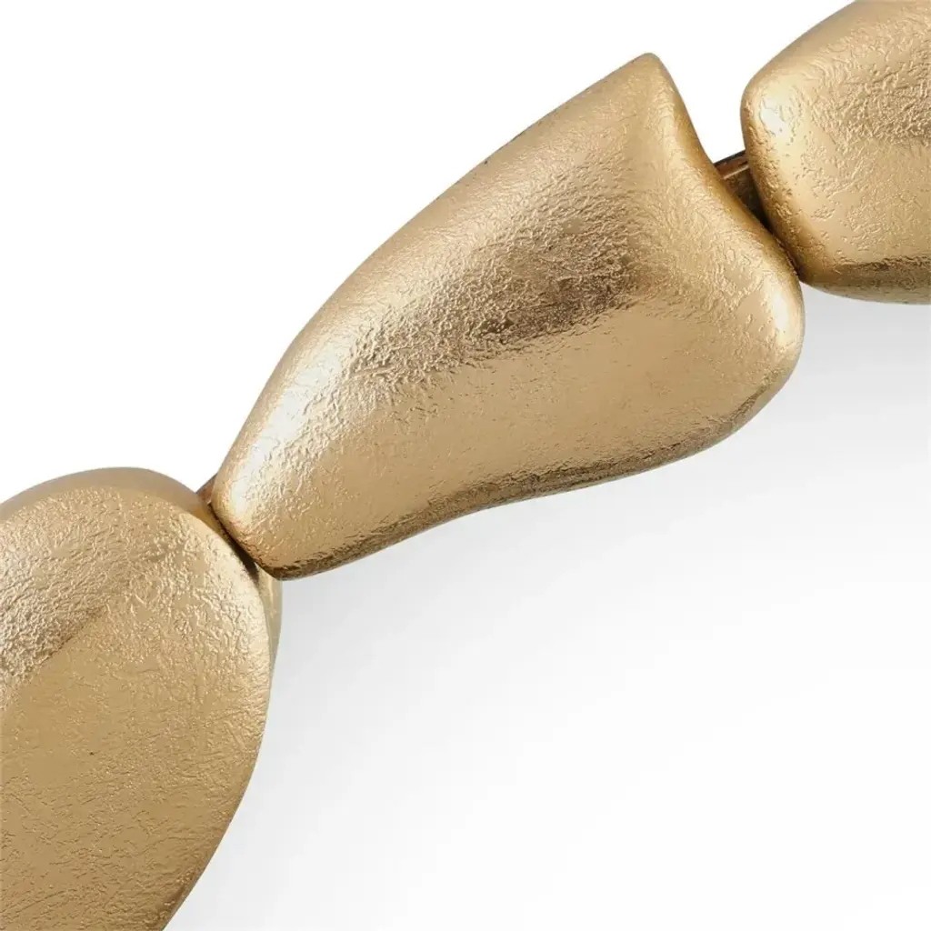 The Totem Mirror is a stylish piece that infuses any décor with a rich sense of visual depth. Crafted from aluminum in a Champagne finish, the circular frame is created by a collection of pebble-like shapes with subtle texturing. This piece is affixed with French cleats and may only be displayed in a vertical orientation.