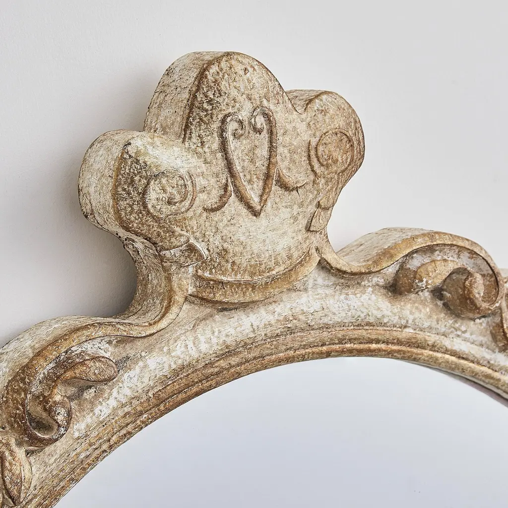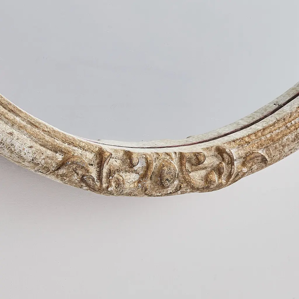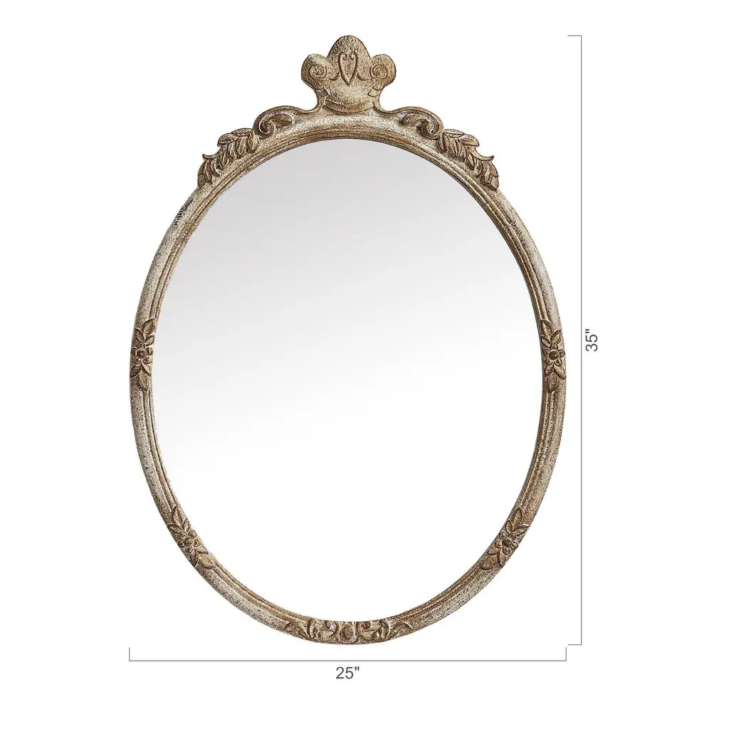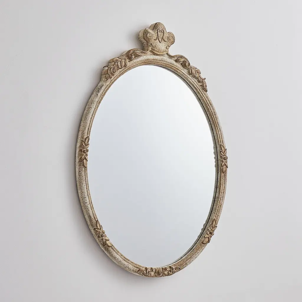 Traditioanl Oval Mirror With Wood Frame Rustic Decor Wall Mirror - Grey