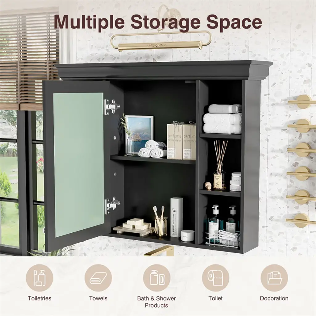 Tramull Black Wall Mounted Medicine Cabinet With Mirror Door, Modern Bathroom Storage With Adjustable Shelves