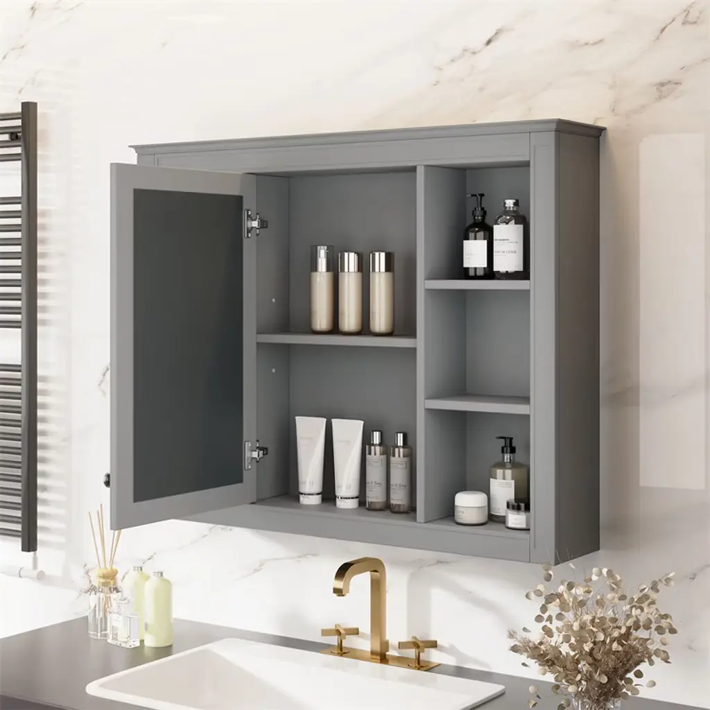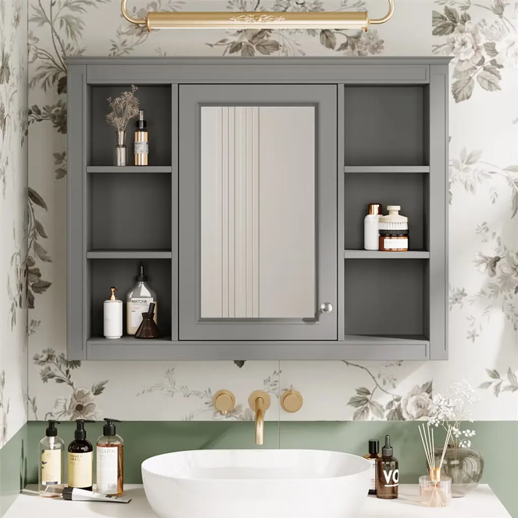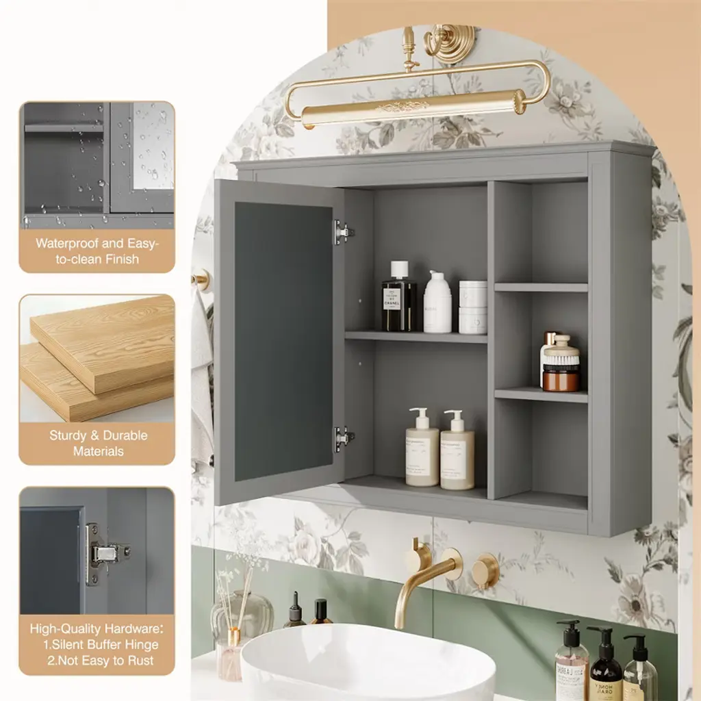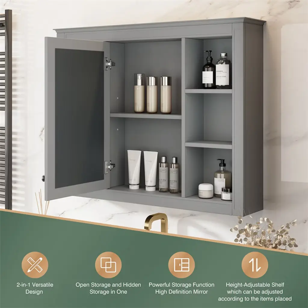 Tramull Gray Modern Wall-mounted Medicine Cabinet With Mirror, Bathroom Storage With Adjustable Shelves, Space-saving Design