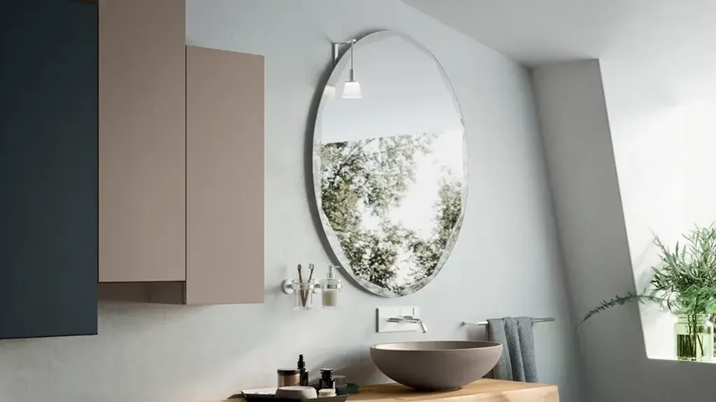 Trasimeno is a frameless mirror. Polished edge, with bevel, glass thickness 6 mm.